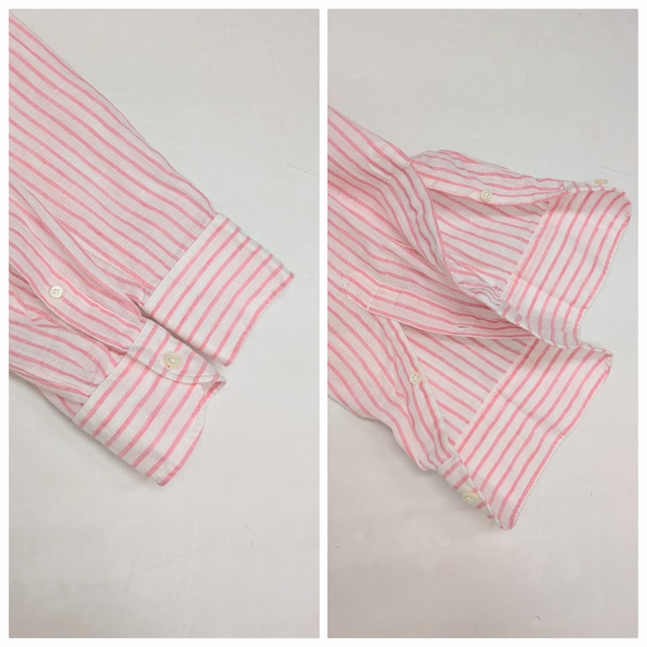 LUIGI BORRELLI ルイジ ボレッリ リネン ストライプシャツ ピンク イタリア製 サイズ 15
