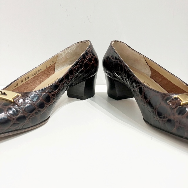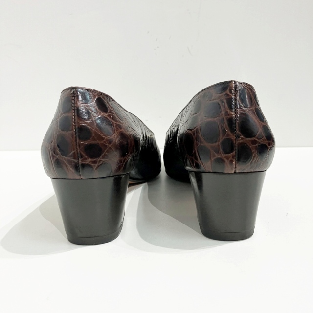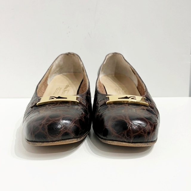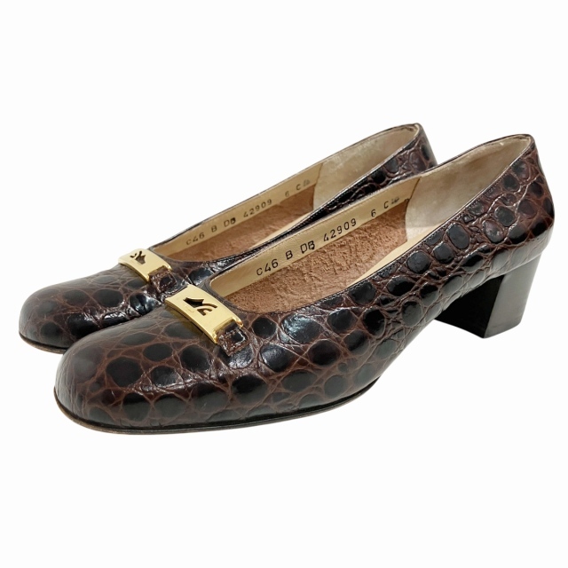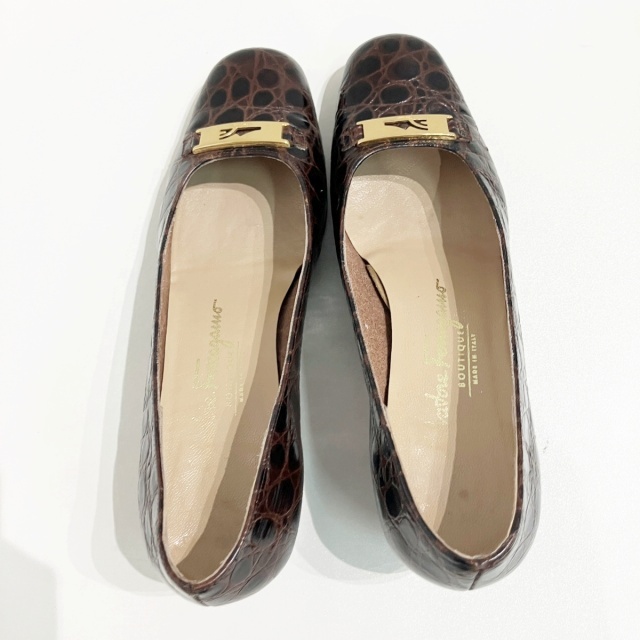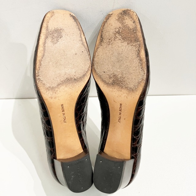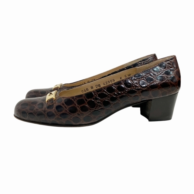 サルヴァトーレフェラガモ Salvatore Ferragamo パンプス ローファー クロコ 型押しレザー 茶 ブラウン 6 約24cm IBO71 レディース