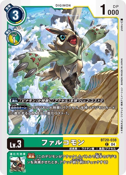 ファルコモン〔C〕【緑/黄/Lv.3/BT20-038】〈OVER THE X〉 デジモンカードゲーム