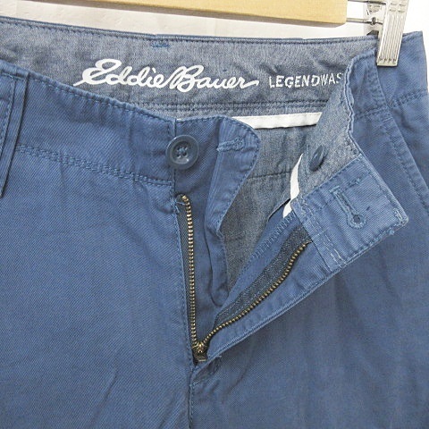未使用品 エディーバウアー EDDIE BAUER アウトドアウエア パンツ ストレート ロング ウォッシュ加工 綿 青 ブルー P2 レディース