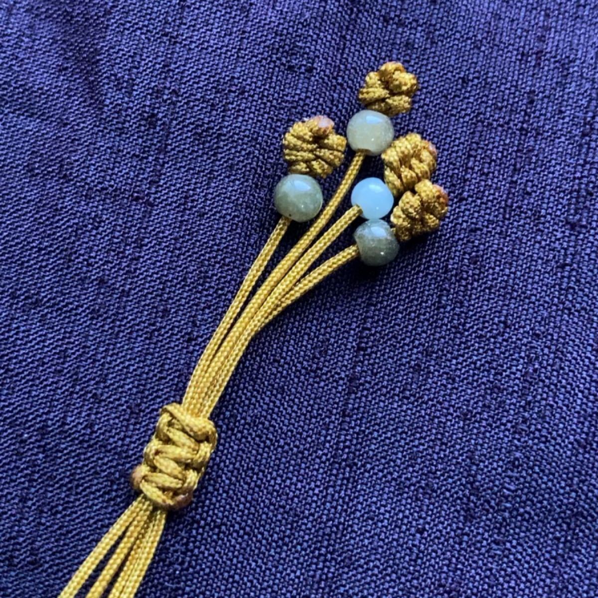 紐の一番後の所にムギの花を編みました、