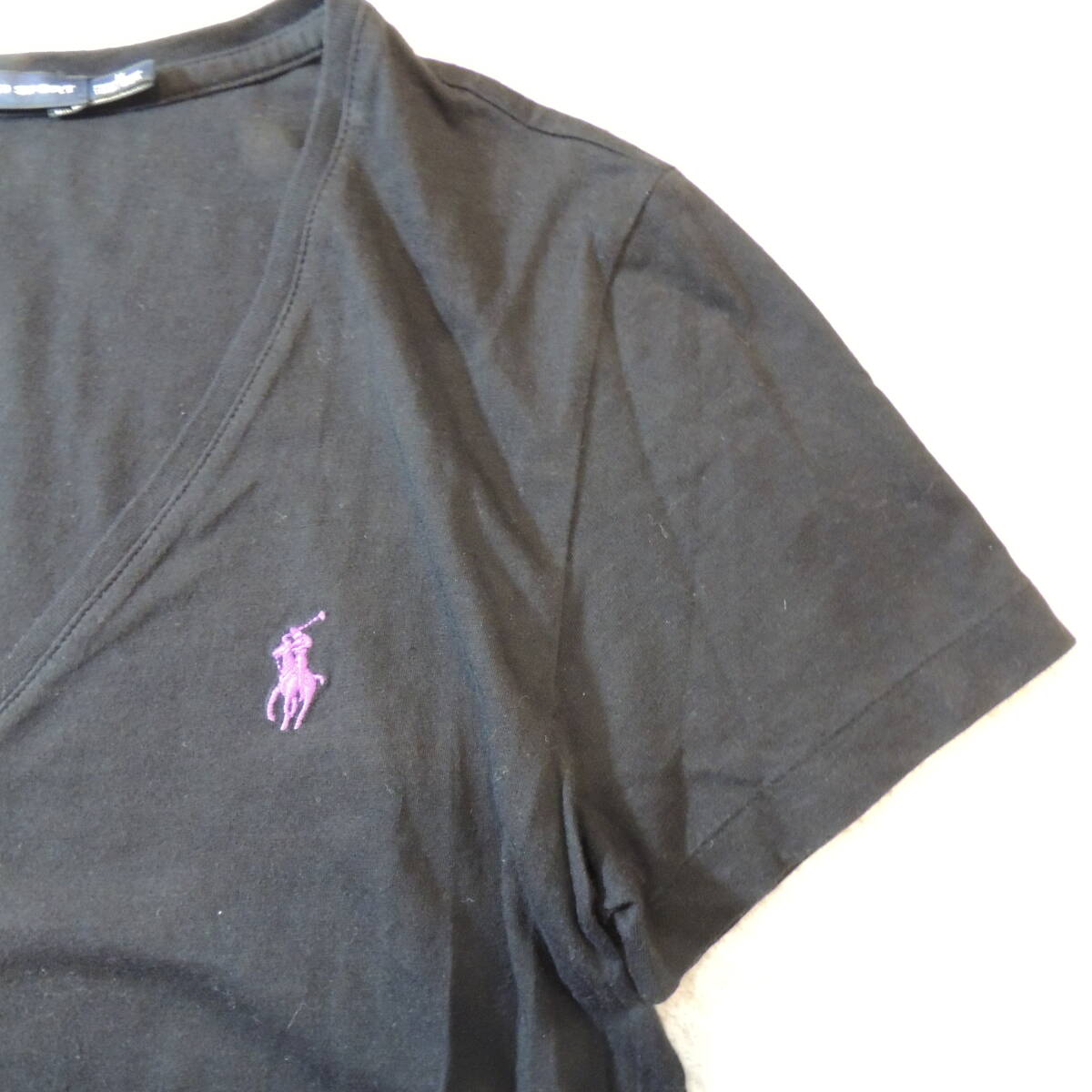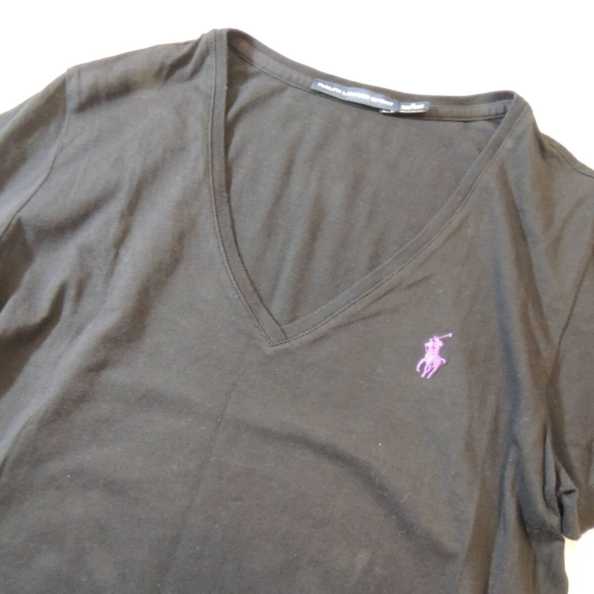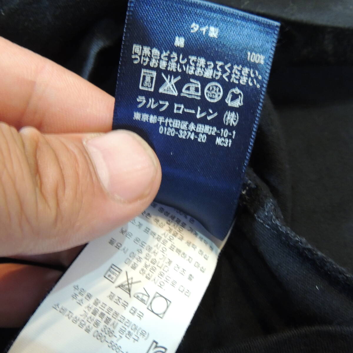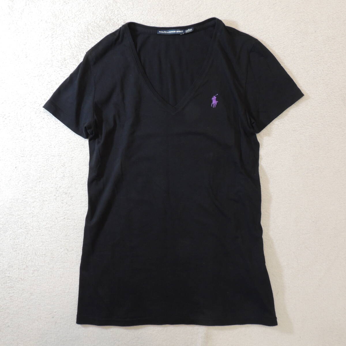 RALPH LAUREN ラルフローレン 胸刺繍ロゴ クルーネック ショートスリーブ 半袖Tシャツ 黒 ブラック JPレディースL 色落少