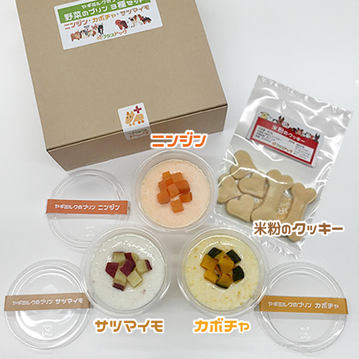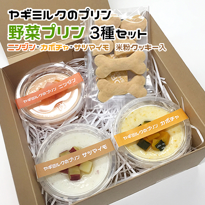 犬用・猫用 ヤギミルクのプリン 野菜プリン3種セット ニンジン・カボチャ・サツマイモ 米粉クッキー入 冷凍パック【クール便発送】