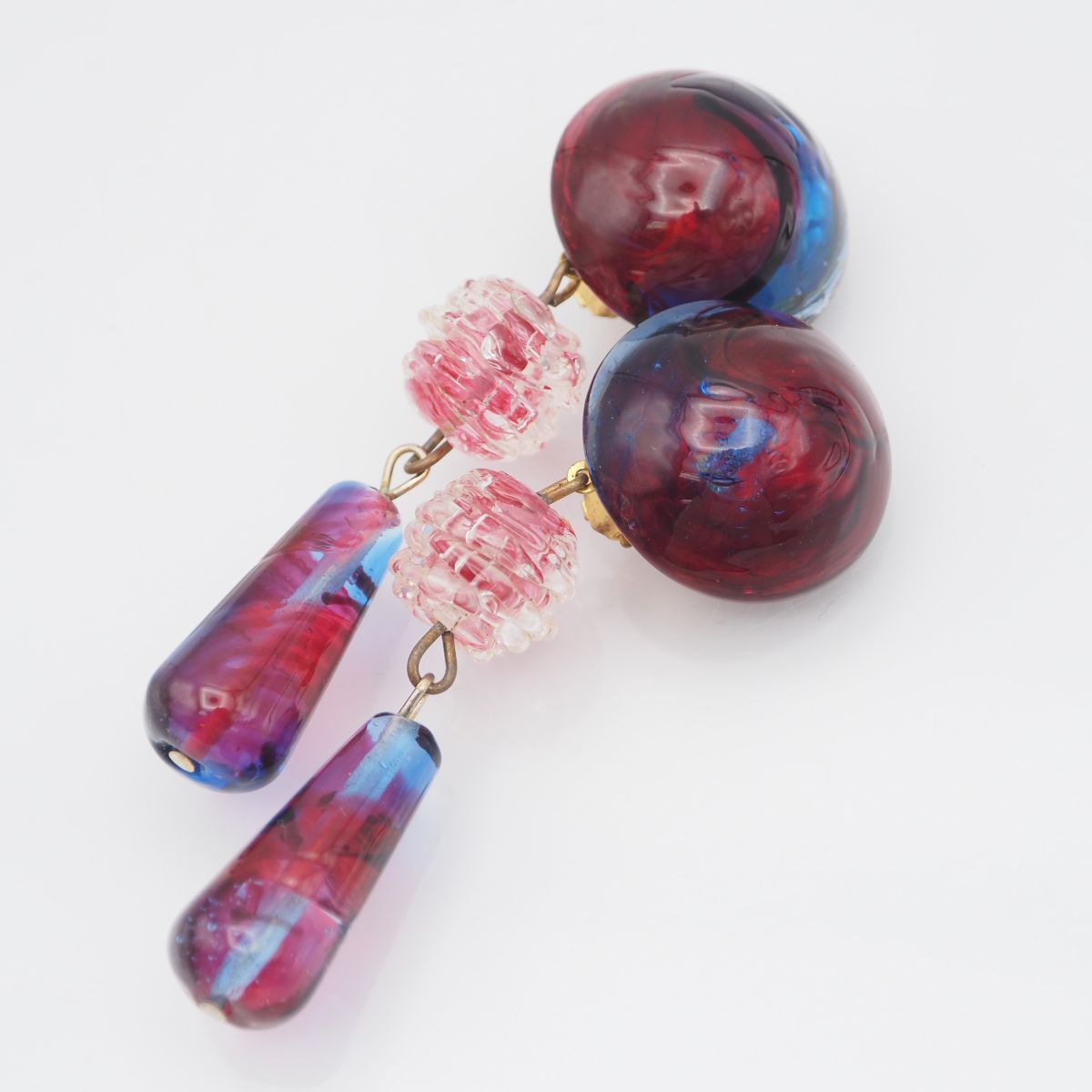J763 イヤリング 大ぶり カラーガラス ゴールド スウィング デザイン コスチュームジュエリー
