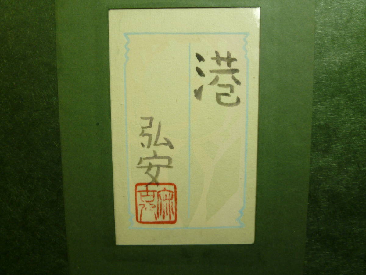 真作保証 橋本弘安『港』共シール 日本画15号 池田清峰堂額装 日展会員評議員 師・橋本明治・高山辰雄 芸大卒 女子美大名誉教授