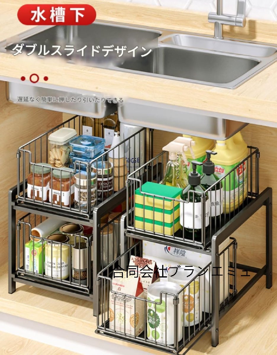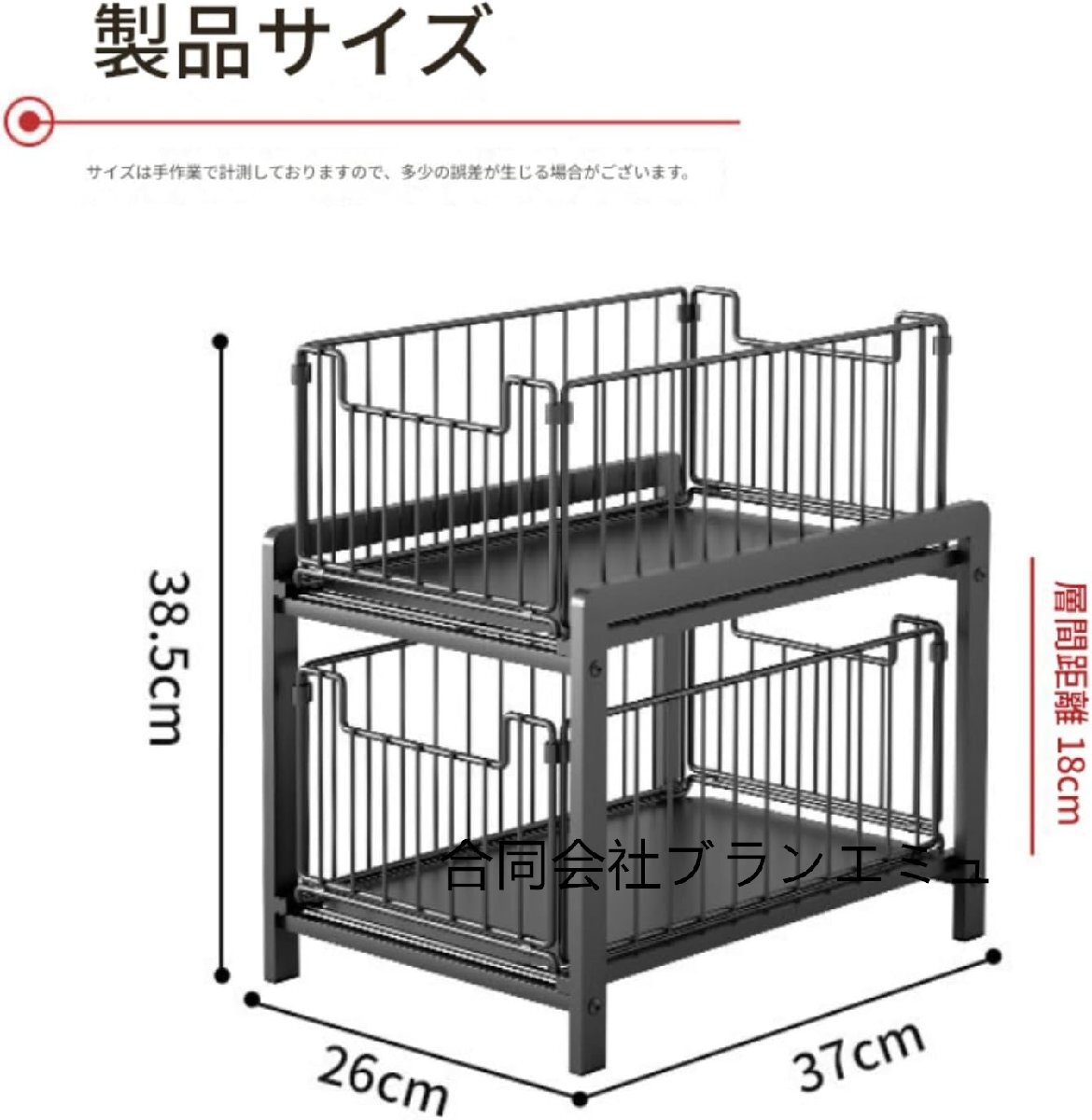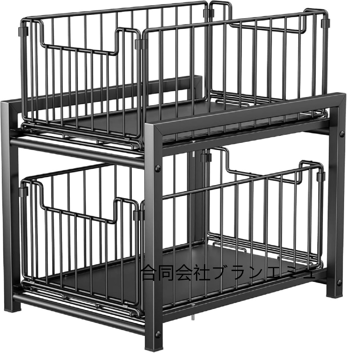 シンク下ラック 収納 スライド 幅27×奥行37×高さ38.5cm 大容量 引き出し 2段 キッチン収納 洗面台下 収納ラック キッチンラック (Black)