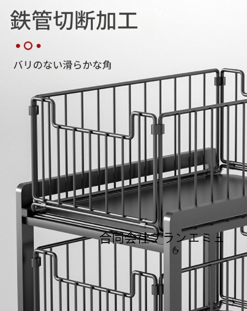 【お手入れも楽々】◎防サビ加工:引き出しやフレームにはしっかり防サビ加工を施してある。シンクの下や洗面台の下など湿気の多い場所で使うのに最適。◎丁寧に仕上げた滑らかな加工:フレーム角には滑らかな加工を施し、安心してお使いいただける。