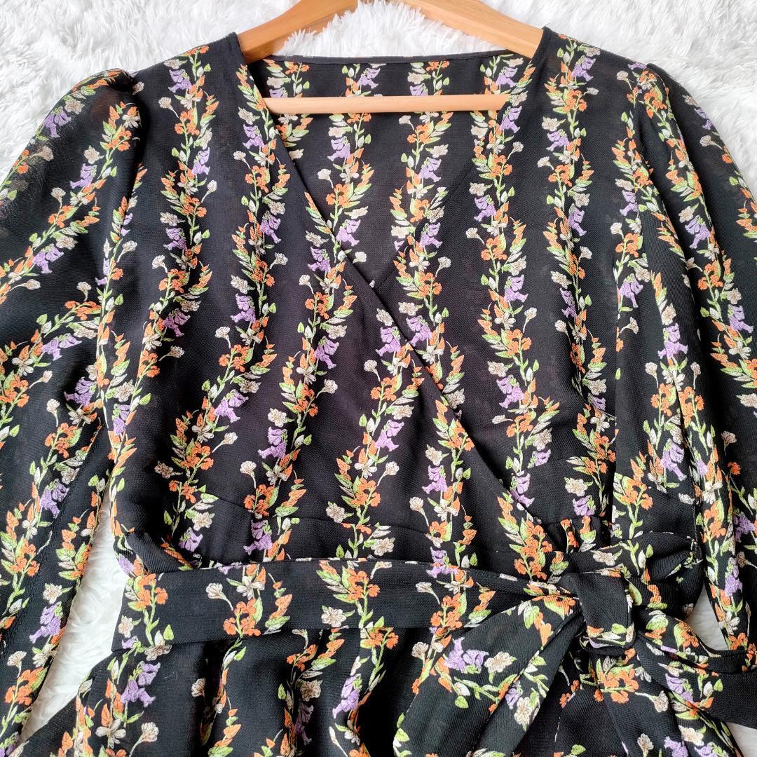 美品 ユナイテッドアローズ 総柄 ラップワンピース 36 S ボタニカル 花柄 マキシ丈