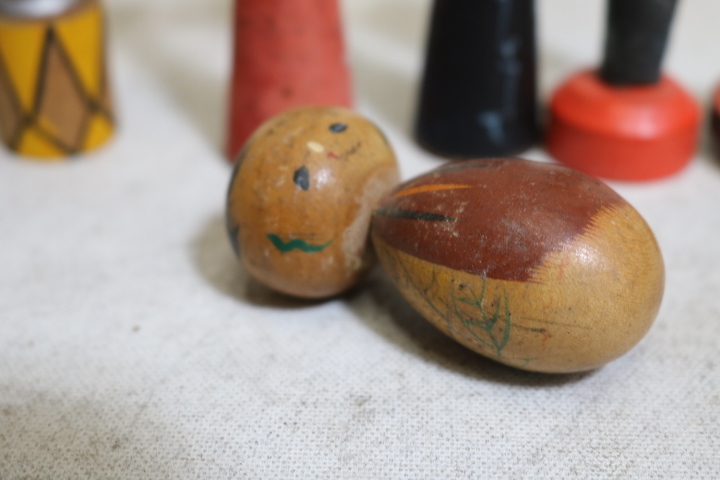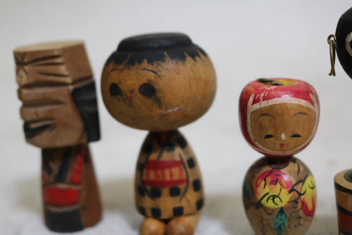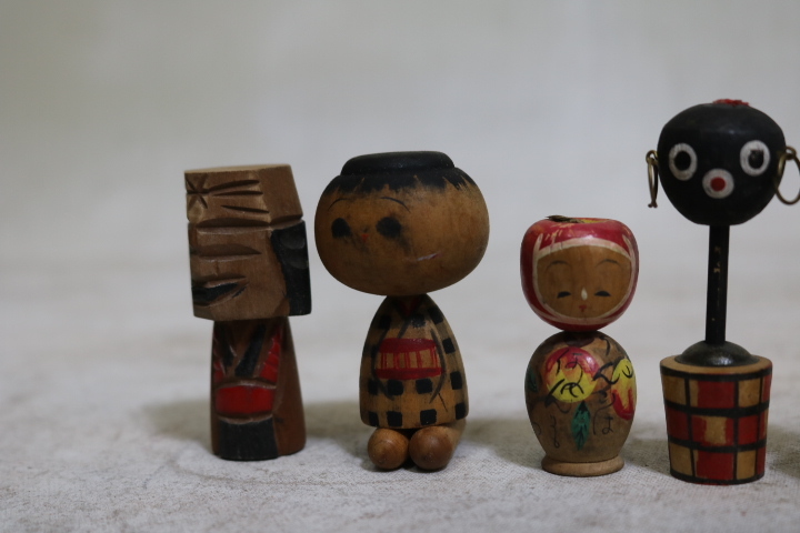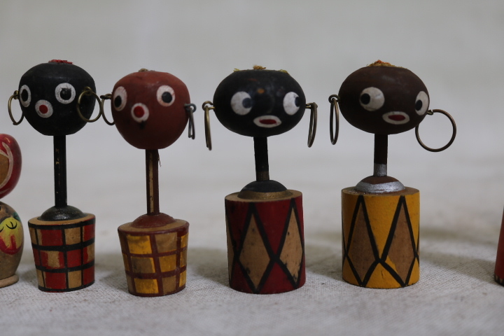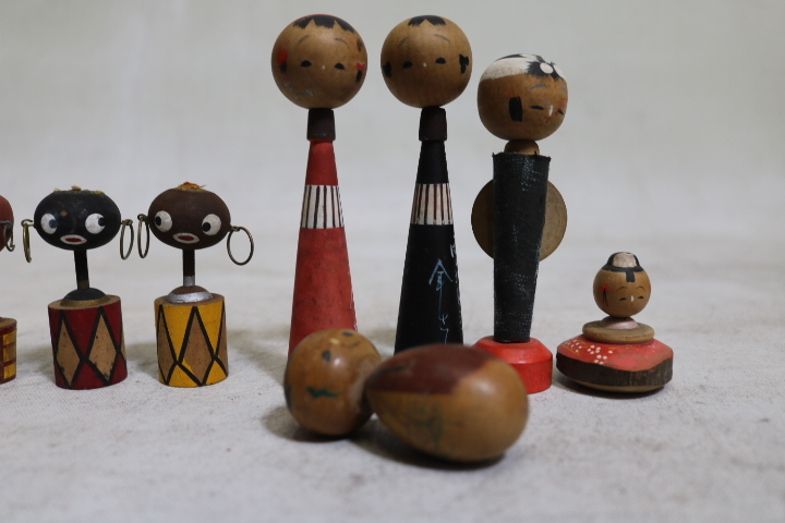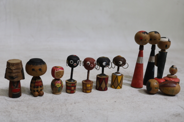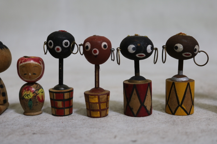 【伊董】c101.アンティーク!レトロ! 古いこけし変わりミニこけし12体セットちびくろ黒人りんごちゃん他 #郷土玩具 #民芸品 #古民藝