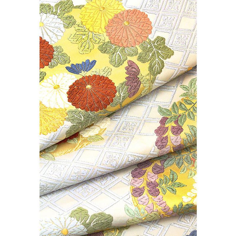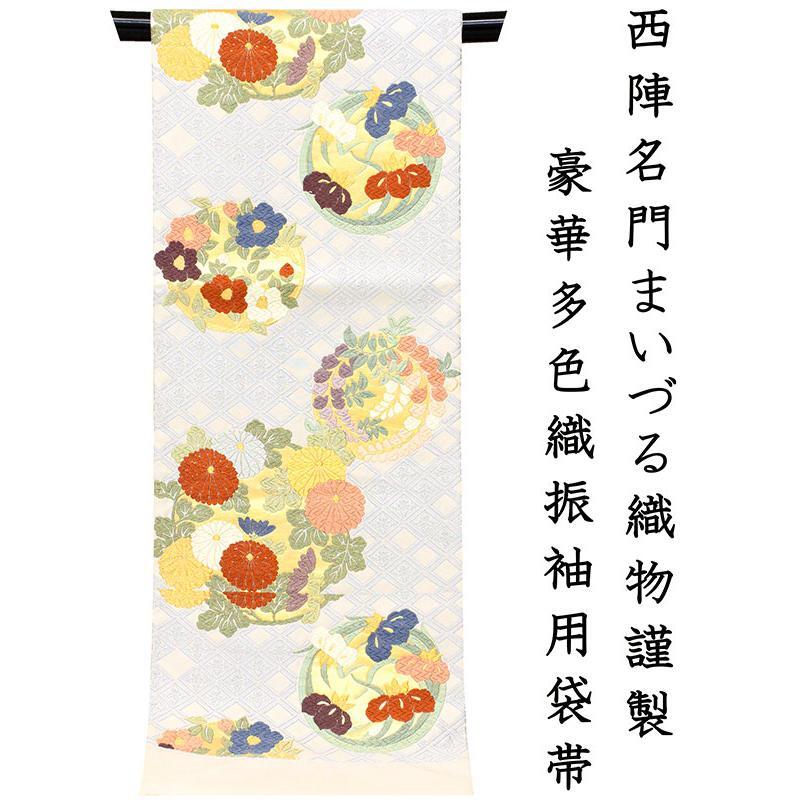 | ※記念感謝祭【仕立無料】西陣名門まいづる織物謹製☆唐織金糸豪華多色織振袖袋帯☆四季花丸文 |