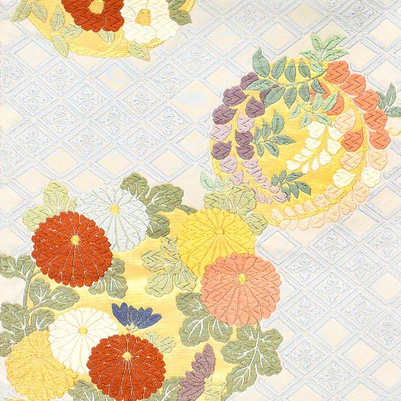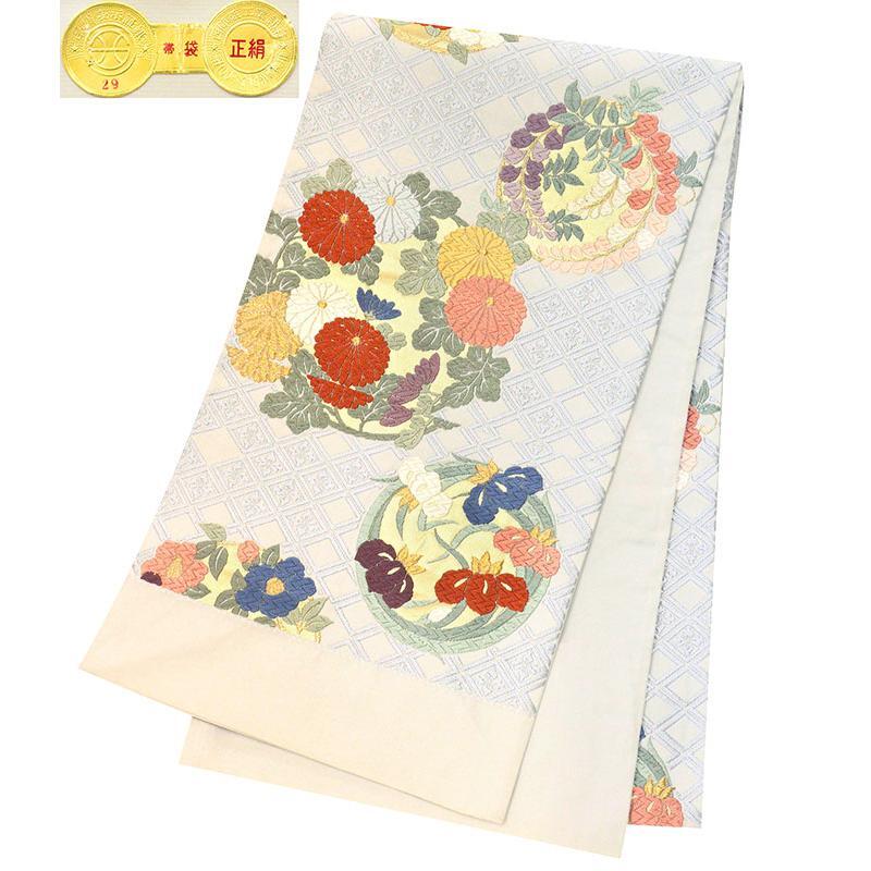 | ★品質・詳細 | ○地色 【こちらの地色は明るい白グレー地系です。】 ○絹織物 ○新品・未仕立の袋帯です。 ○西陣名門まいづる織物謹製 【証紙番号 29】 ○長さ 約4.38m ○参考上代 280,000円 |