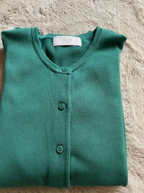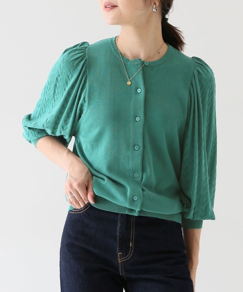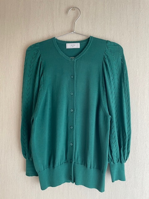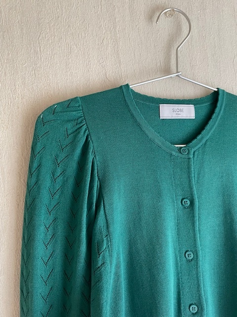 美品*SLOBE IENA*スローブイエナ*PECCI SOFTCREPE 柄編みカーディガン*グリーン*12,100*