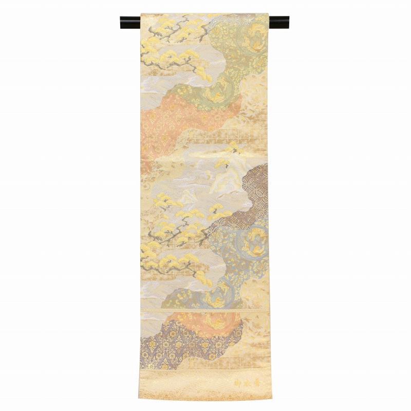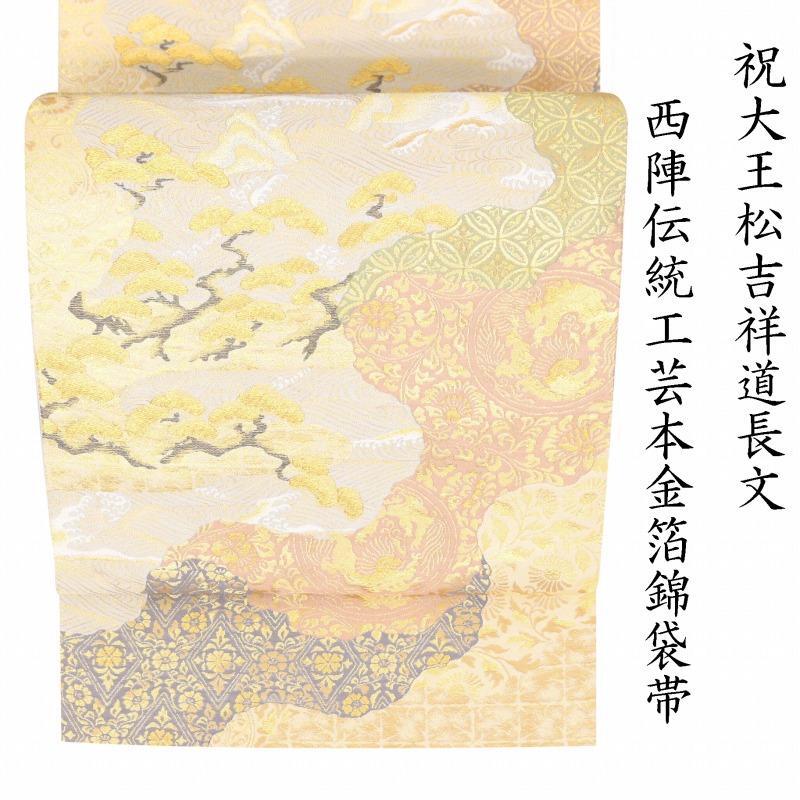 | ※記念感謝祭【仕立無料】西陣伝統工芸本金箔錦織礼装用袋帯☆祝大王松吉祥道長文☆老舗七福織物謹製 |