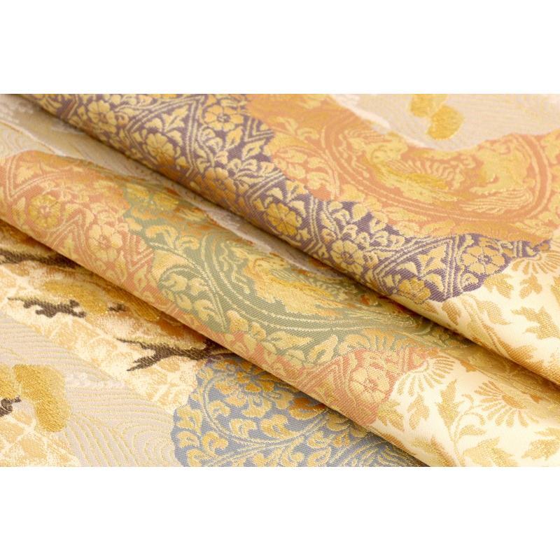 | ★品質・詳細 | ○地色 【こちらの地色は白クリーム色系です。】 ○絹織物 ○新品・未仕立の礼装用袋帯です。 ○西陣老舗七福織物謹製 【証紙番号 1935】 ○長さ 約4.40m ○参考上代 158,000円 |