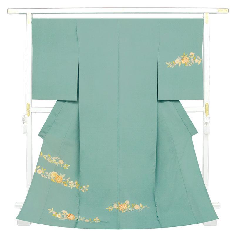 | ★品質・詳細 | ○地色 【こちらの地色は古典色の灰緑味の青地色系です。】 ○絹織物 ○新品・未仕立の逸品訪問着の仮絵羽です。 ○最高級ちりめん地 ○参考上代 680,000円 |