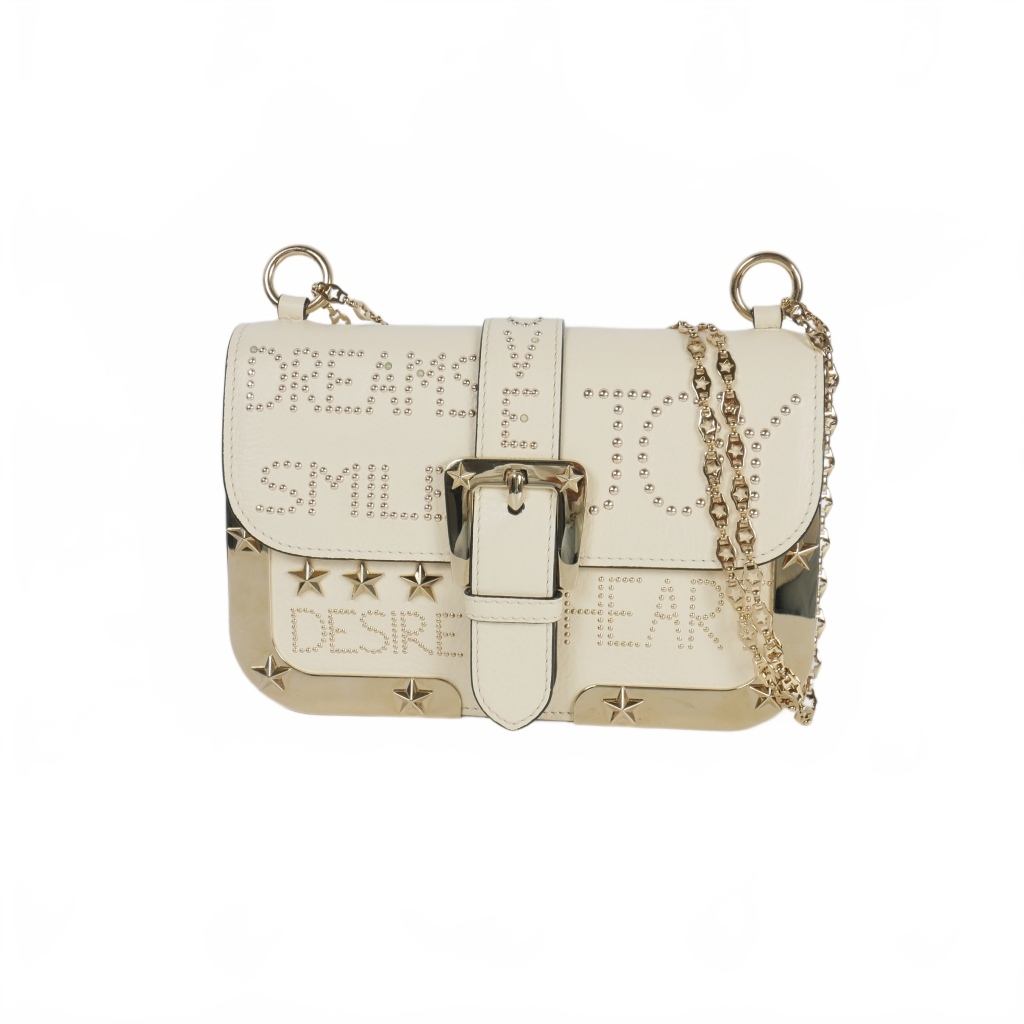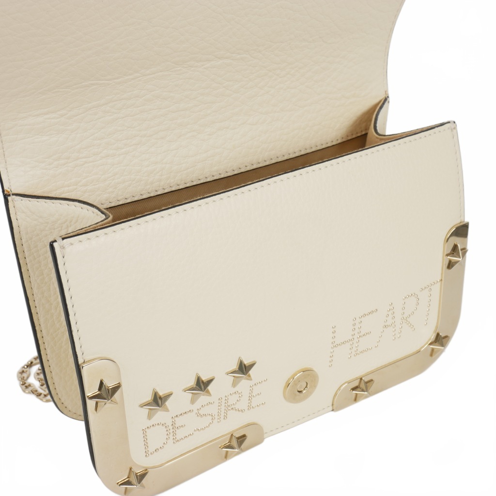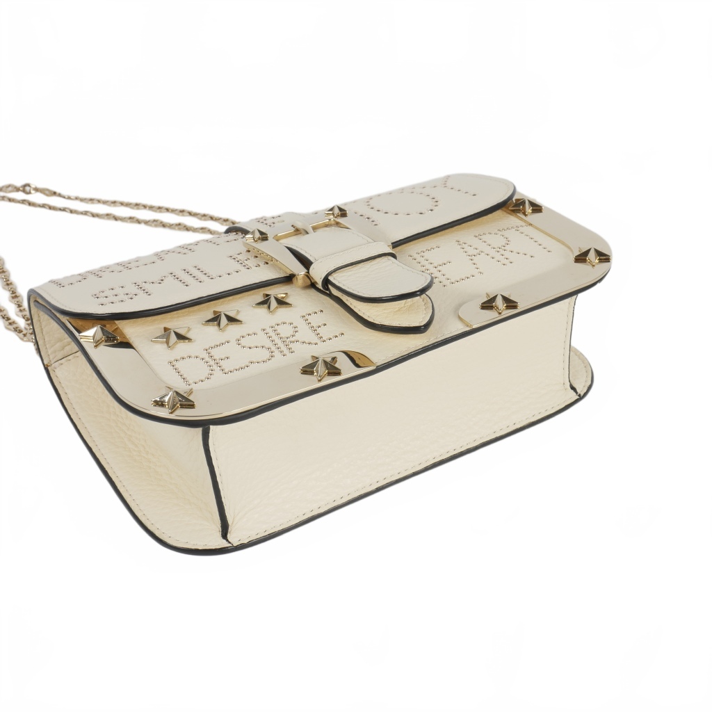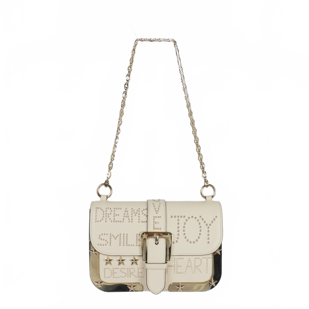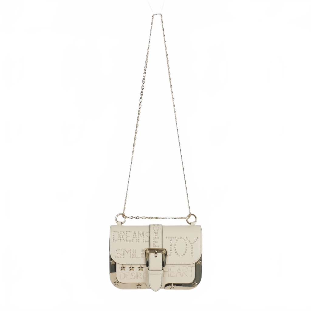 レッド ヴァレンティノ RED VALENTINO テクスチャードレザー スタッズ チェーン ショルダーバッグ 白 オフホワイト レディース