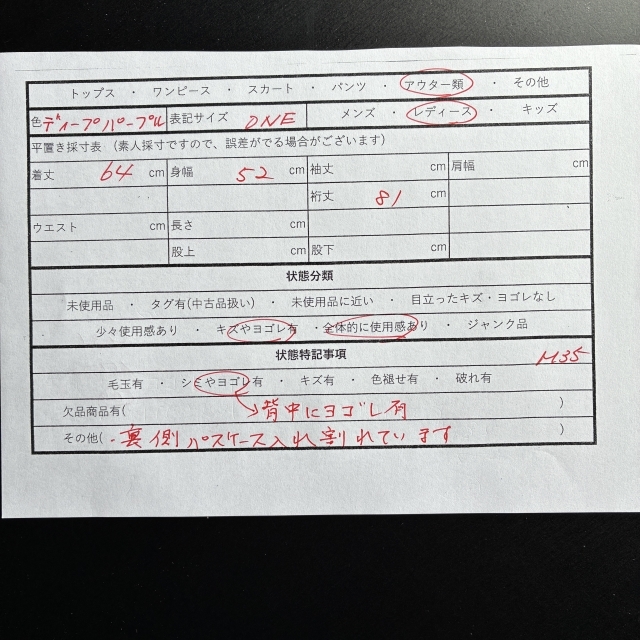 ・慎重に検品を行っておりますが、見落としがある場合がございます。