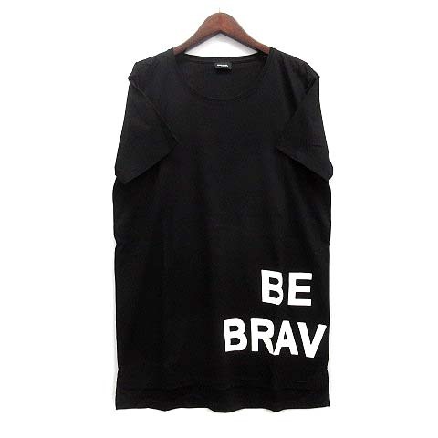 ディーゼル DIESEL BE BRAVE Tシャツ ロング丈 半袖 ブラック 黒 M メンズ