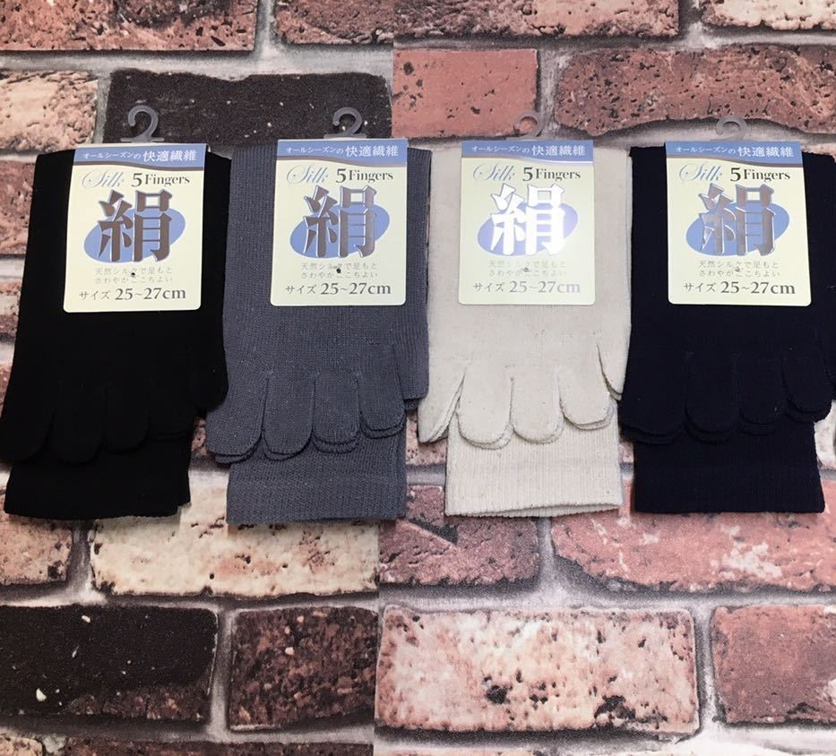 送料無料!『4足組』オールシーズン快適&足もと爽やか!絹&綿混5本指ソックス