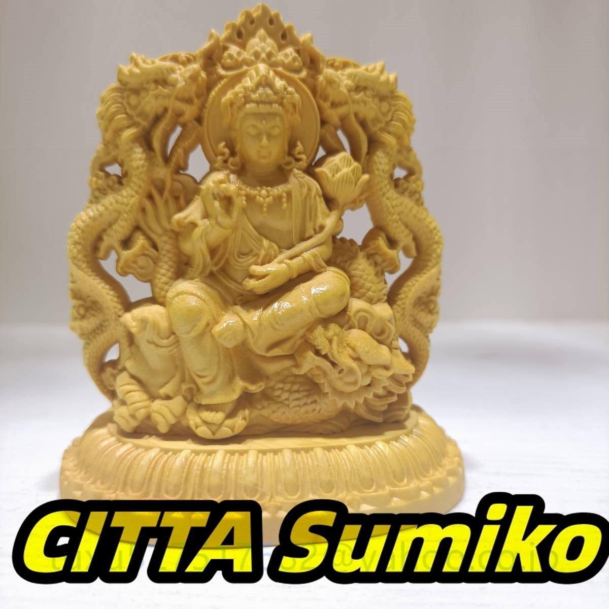 龍上観音 観音菩薩 御竜観音 降竜観音 両面彫り 柘植仏像 開運風水 厄除け