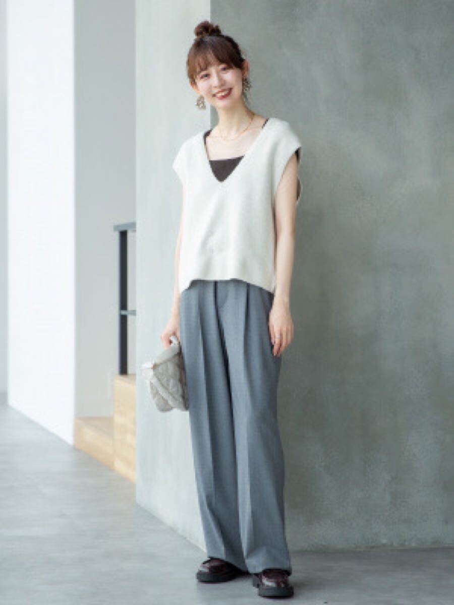 - ブラトップなのでブラの肩ひもが出るのを気にせず、1枚で決まる。