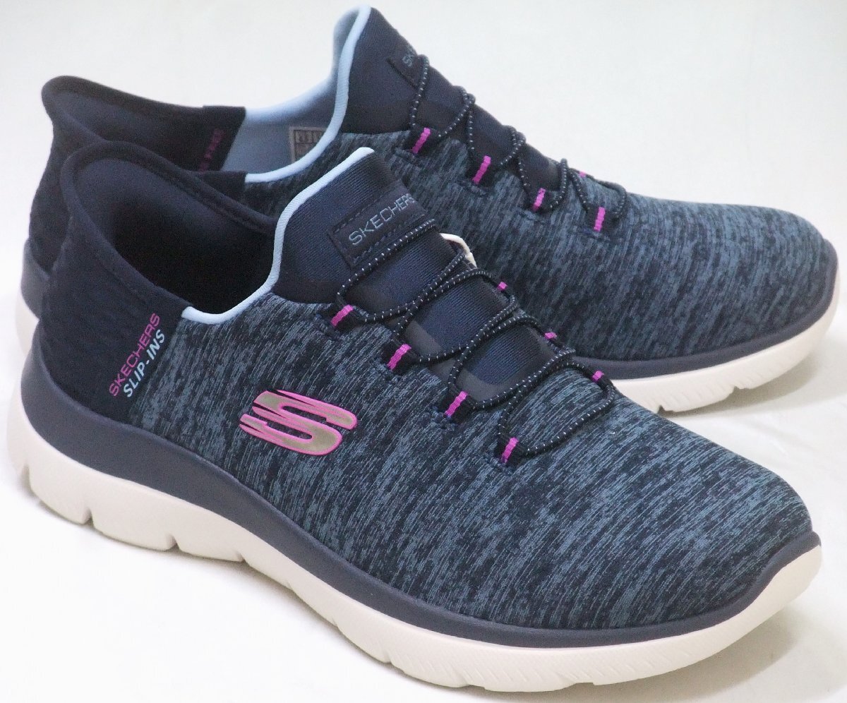 送料無料 スケッチャーズ SUMMITS-DAZZLING HAZE スリップインズ ネイビー 25.0cm ハンズフリー スリッポン スニーカー 149937W NVPR