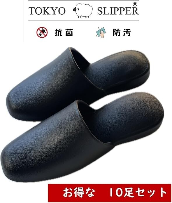 TOKYO SLIPPER 洗えるスリッパ 「5足セット」 一体成型 厚底 室内履き 防音 抗菌 軽量 柔らか 来客用 業務用 民宿 旅館 L ブラック(0)