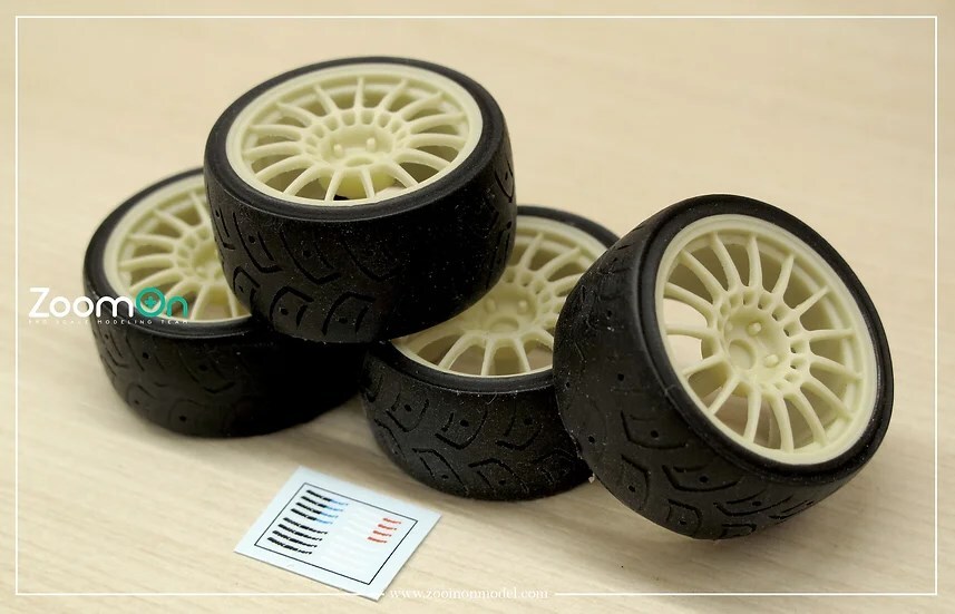 ZoomOn ZR078 1/24 17'' Enkei Sport RC-T5 rim set -- In scale -- 1 set of rim parts -- 1 set of tire