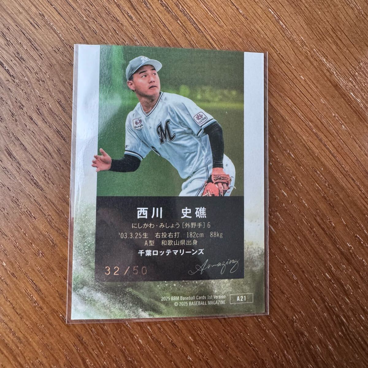 BBM 2025 1st Version 西川史礁 AMAZING パラレルカード 50枚限定 千葉ロッテ