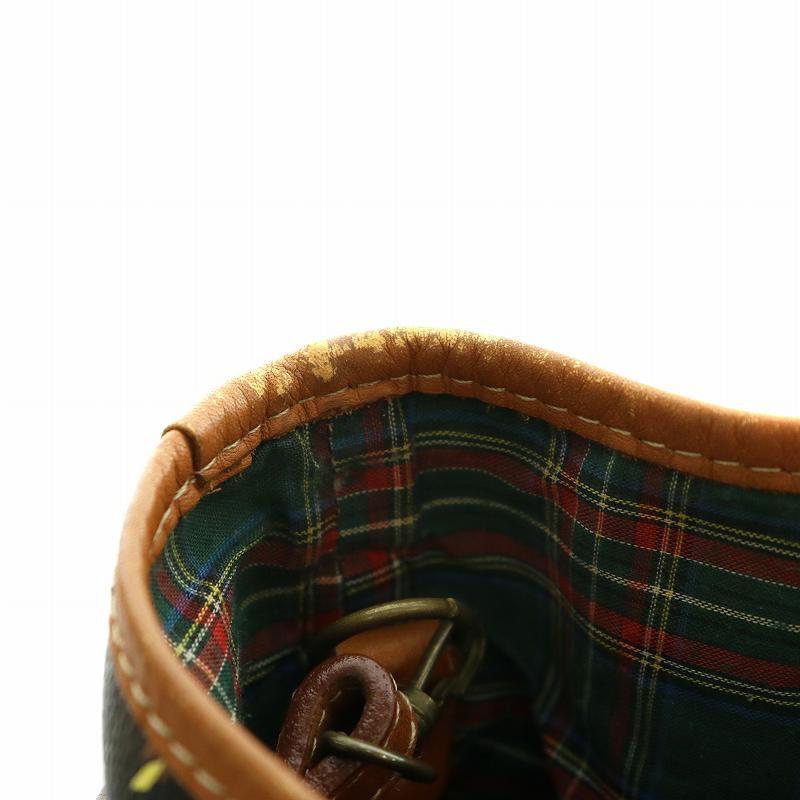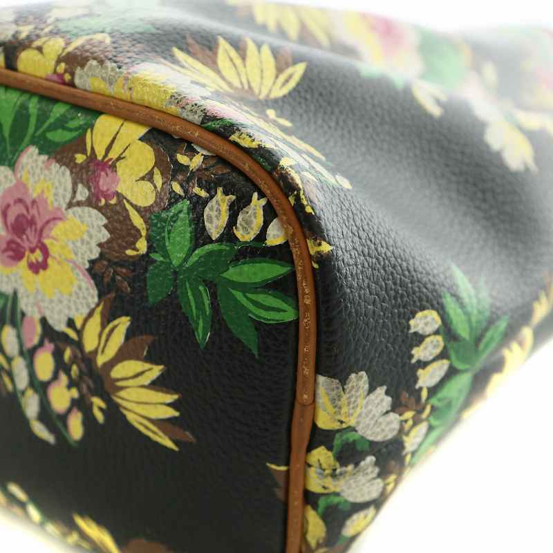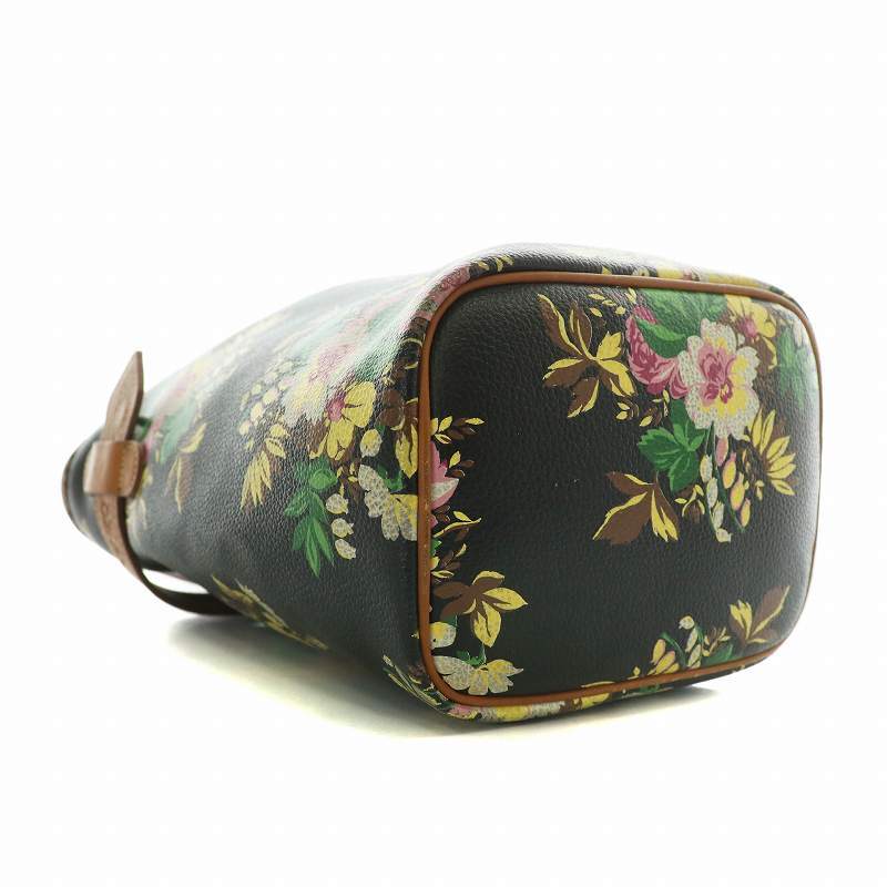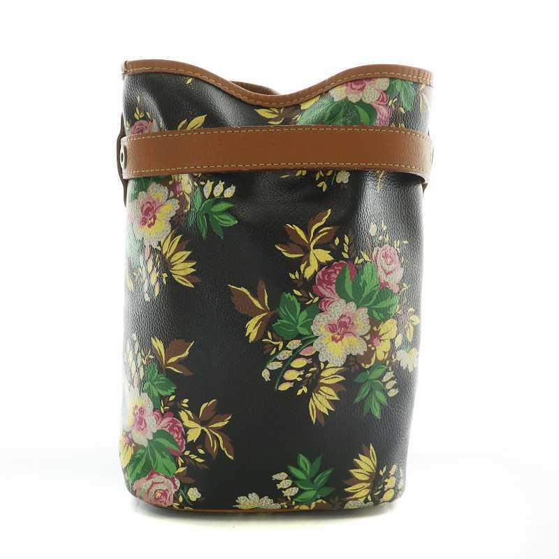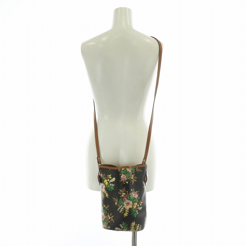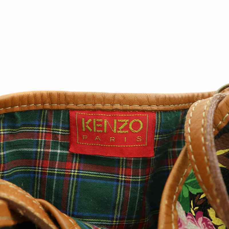 ケンゾー KENZO ショルダーバッグ 巾着 レザー オープントップ 花柄 総柄 内側チェック柄 黒 ブラック 茶色 ブラウン