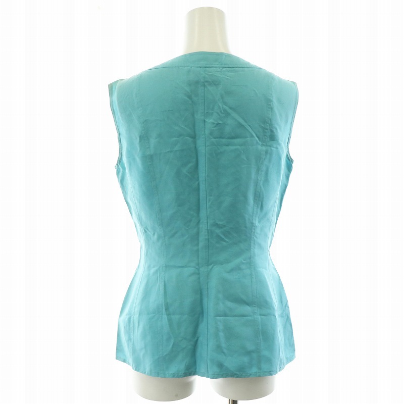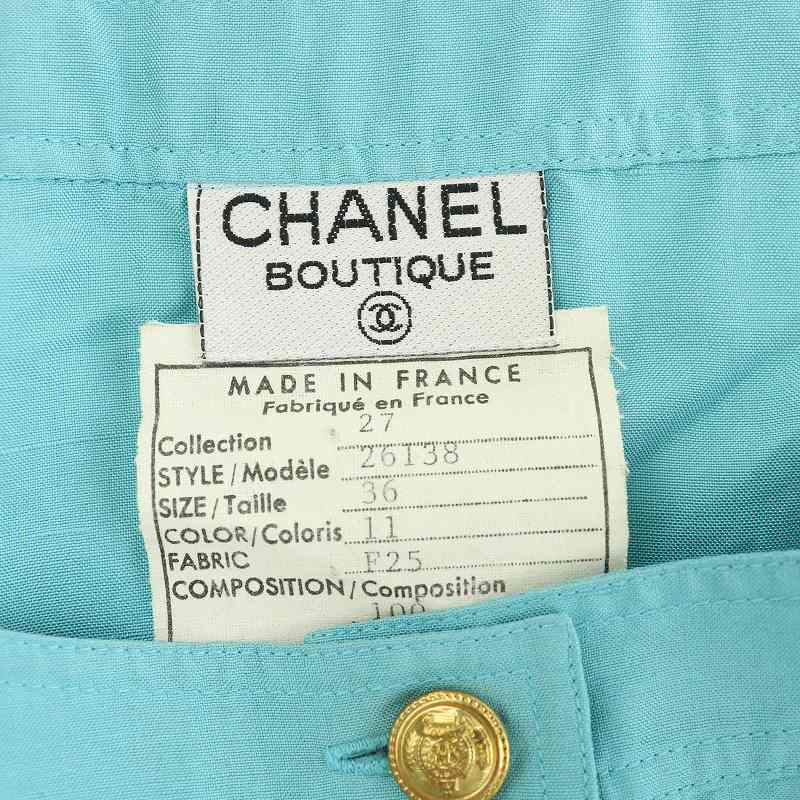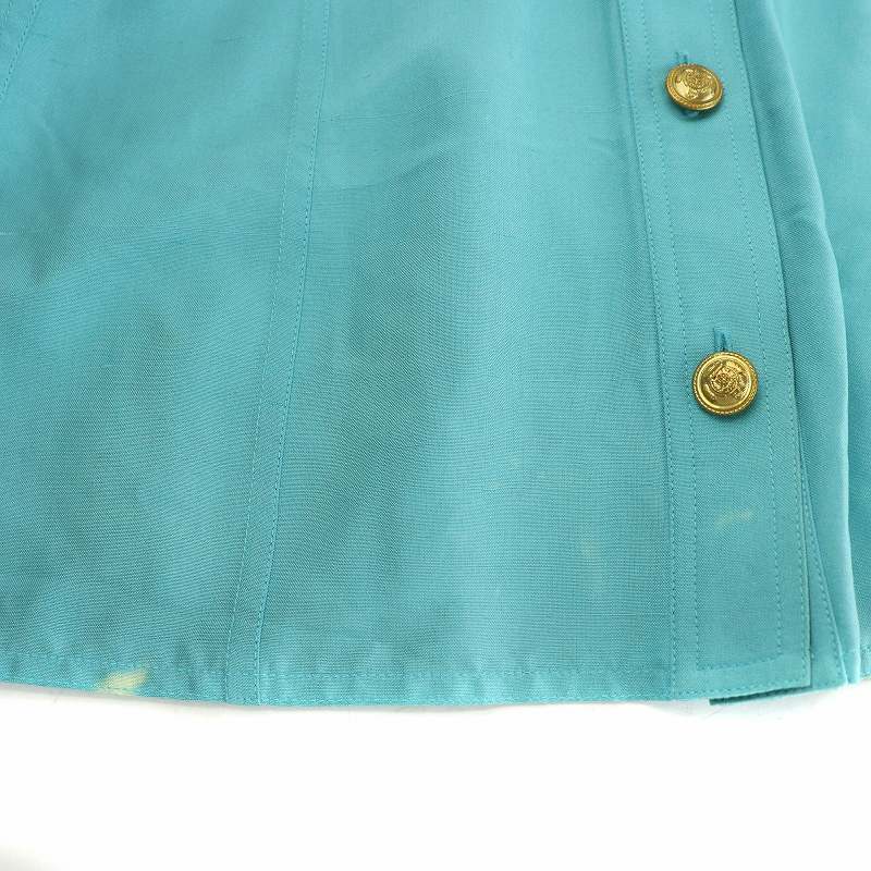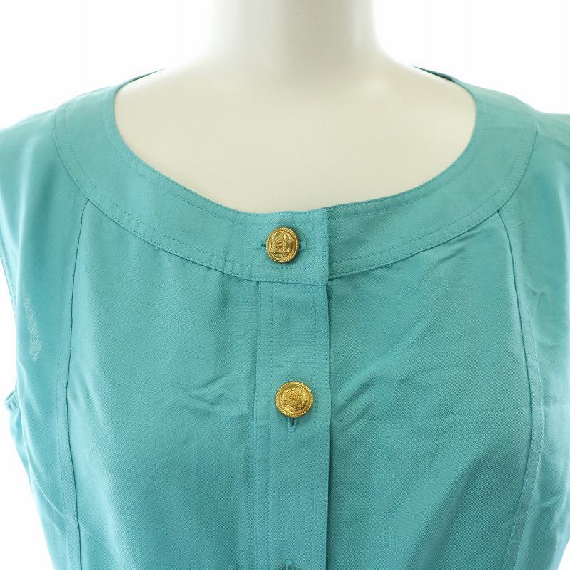 シャネル CHANEL シャツ ブラウス ノースリーブ ノーカラー シルク 金ボタン 36 S 水色 アイスブルー /MW ■GY18 レディース
