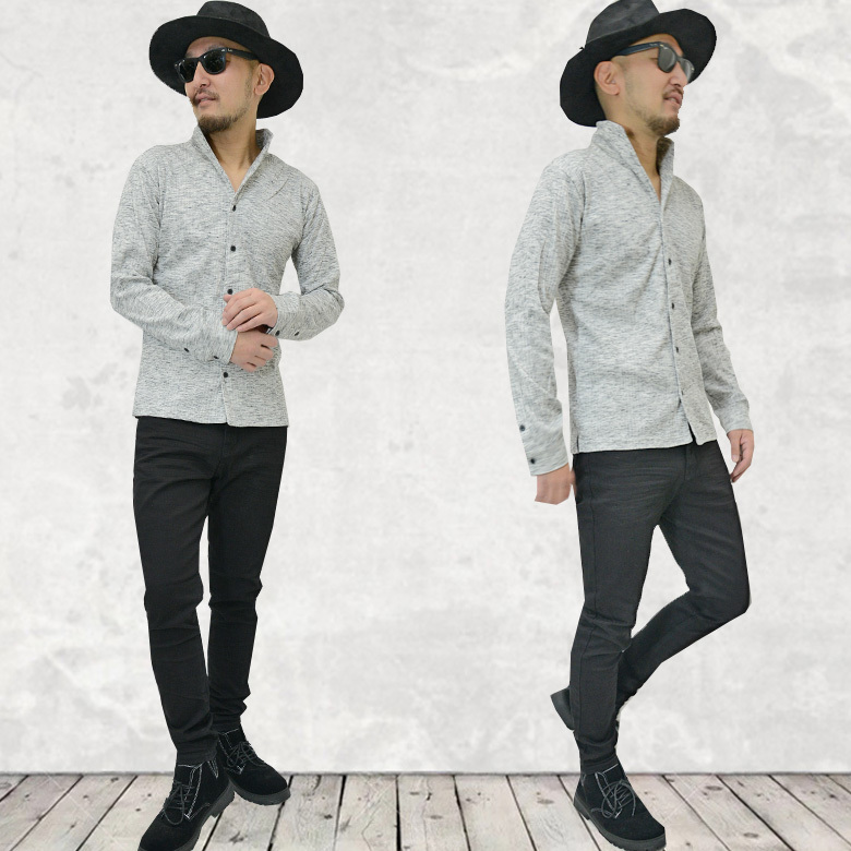 新作【衿ワイヤーストレッチ素材ランダムテレコイタリアンカラー長袖シャツ】が登場。
