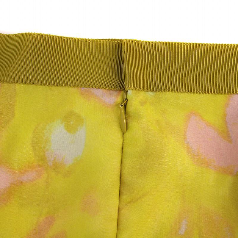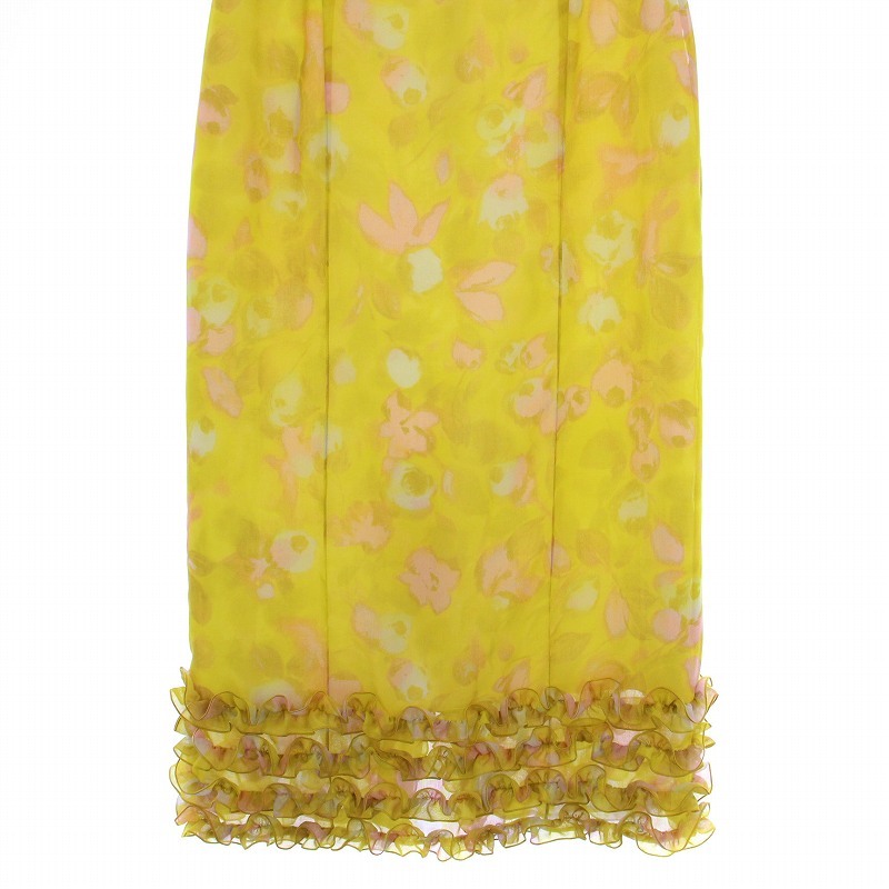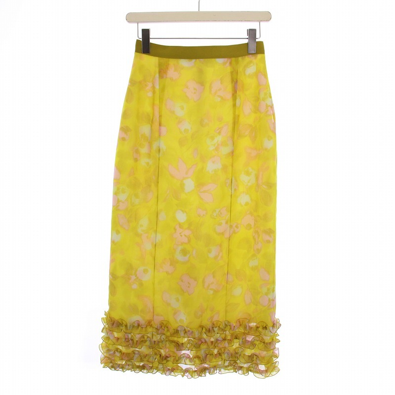 ルシェルブルー LE CIEL BLEU Frill Hem Pencil Skirt タイトスカート ロング 花柄 フリル 34 黄 25A67101 /BM レディース