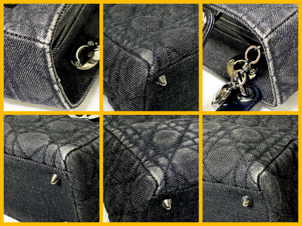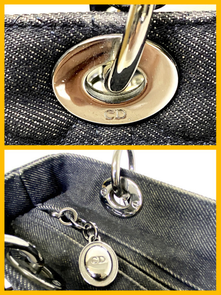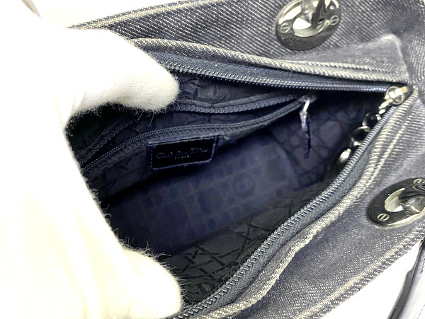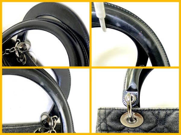 【即決】 Chiristian Dior クリスチャン ディオール レディディオール MA-0999 カナージュ ハンドバッグ ブラック デニム シルバー金具