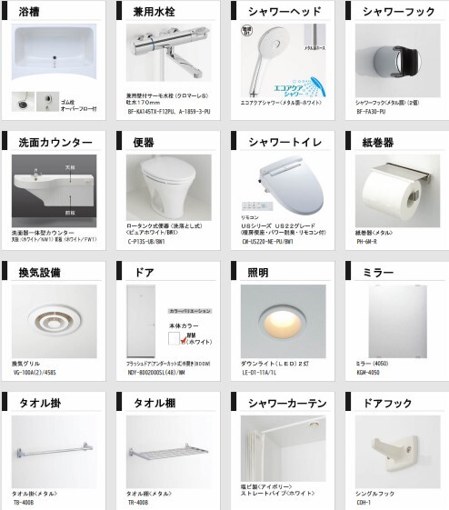 ◎LIXILホテル向け洗面・便器付ユニットバス[1216サイズ] BLCW-1216LBD+H 即決価格は、写真セット価格1.409.750円のなんと 69%OFFで 480.724円【消費税込】 ◆据付必要寸法1310×1680×2494mm。 ◆洗面器・便器付きユニットバスです。 ◆バスルームの魅力をアップする光沢の全面パネルで豪華な雰囲気に。 ◆洗面カウンター一体で、豪華で清掃性もアップ。 ◆浴槽と洗い場床が分割構造、ラクに搬入・ラクに施工。 ◆低床設置で、浴室への出入りがしやすい、浴室入口段差50mm。 ◆浴槽への出入りがしやすい、またぎ高さは約450mm。 ◆兼用壁付け水栓は、温度調整がしやすいサーモ機能付き水栓にエコアクアシャワー。 ◆お手入れのしやすさに配慮した、シャーワートイレが付きました。 ◆照明は、スリム照明(LEDランプ) ◆『フラッシュドア』アンダーカット式。外開き。 ◆ドア位置は4通り(RL・RC・LR・LC)から選択できます。 ◆天井換気扇は付いていません。 | |