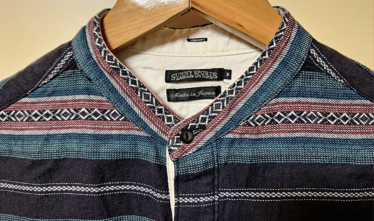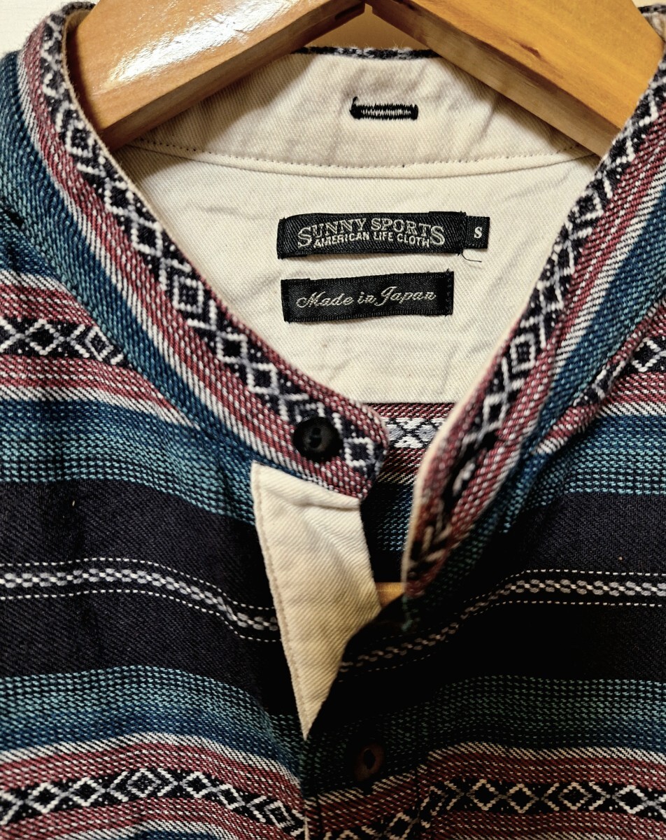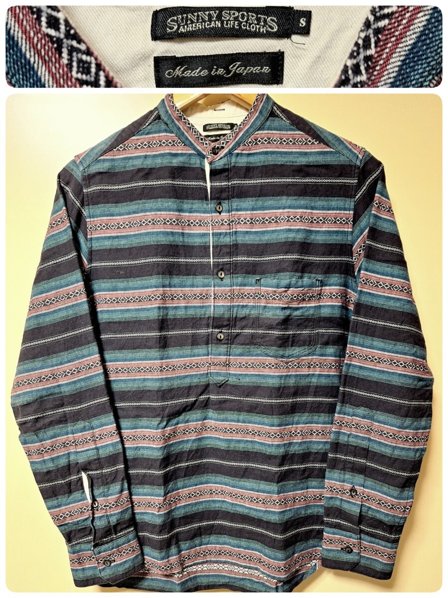 日本製 Sunny Spots サニースポーツSバンドカラーMade in JAPANプルオーバー ヘンリーネック ネイティブ柄 民族柄vintageビンテージ 綿麻