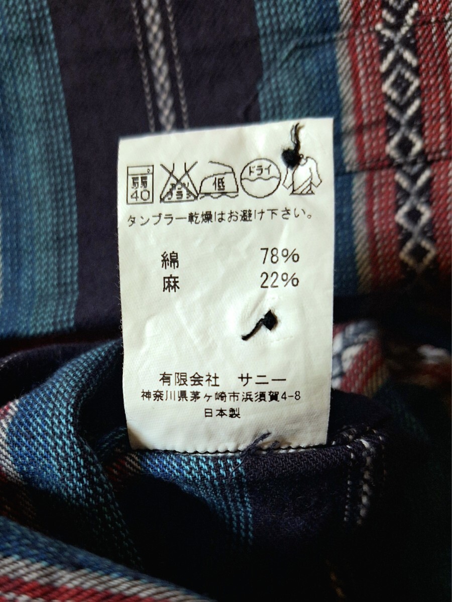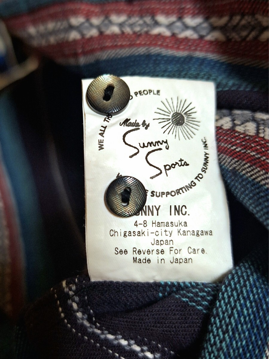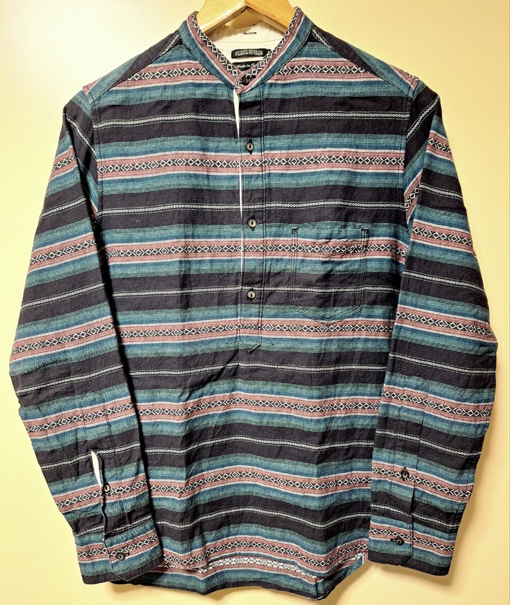 日本製 Sunny Spots サニースポーツSバンドカラーMade in JAPANプルオーバー ヘンリーネック ネイティブ柄 民族柄vintageビンテージ 綿麻
