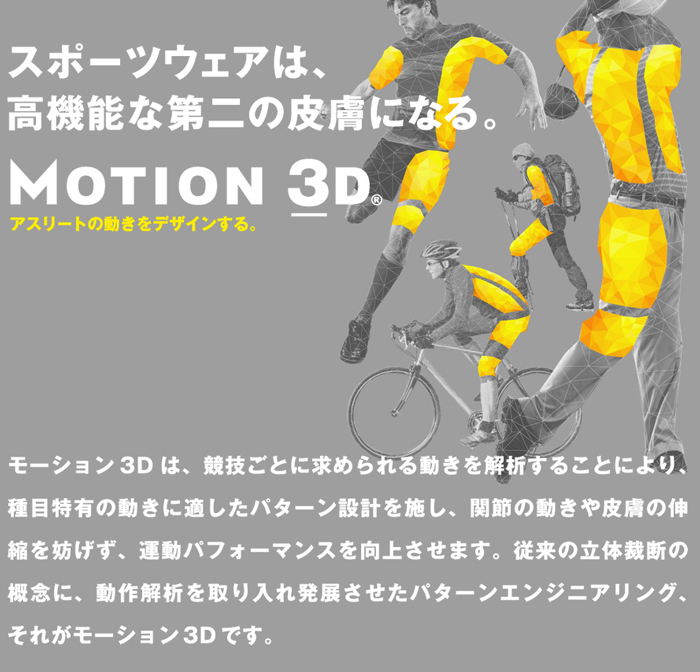 ◆スタイリッシュかつ動きやすさを確保するMOTION3D(スポーツウェアは高機能な第二の皮膚になる。)