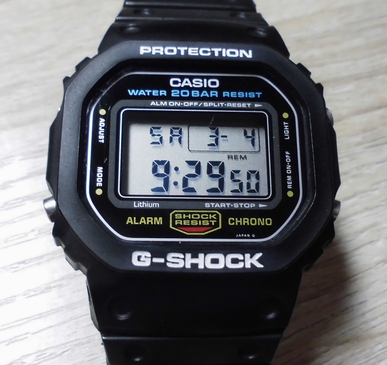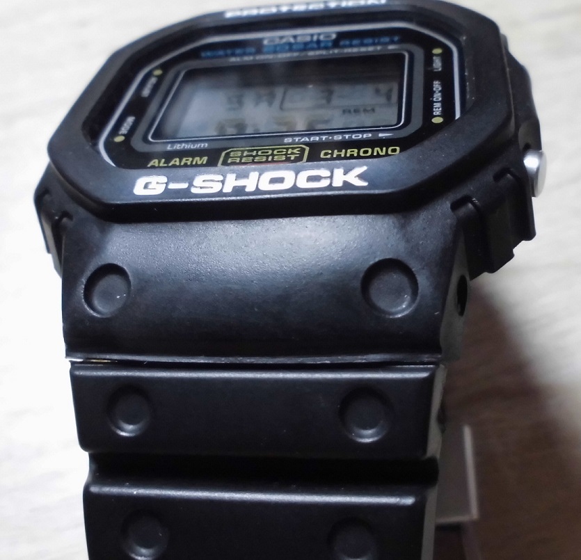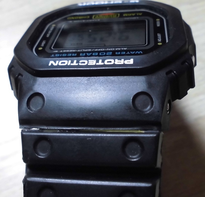 34年前の1991年に発売されたカシオのヴィンテージGショック DW-5600C-1!!! こちらは、キアヌリーブスが映画「スピード」で腕にしていたGショックと少し違う日本仕様のDW-5600C-1!!!スピードの由来は、映画のタイトルからです!!!もちろん裏蓋はスクリューバックでライトはオレンジ豆球ですが、こちらはあまり市場には出てこない、シリアルナンバー付きのスピードです!!! 中古です。写真の時計だけの出品です。ベゼルは補修用ですが未使用品です。写真撮影時はライトが点灯し動作中です。ベルトループを切れにくいほかのGショック用のメタル系に変更しました。月日の月の3の上あたりにうすいキズがガラス面にありますが視認性に問題ないようです。中古なのでコキズはありますが良い状態です。生産終了モデル。 |