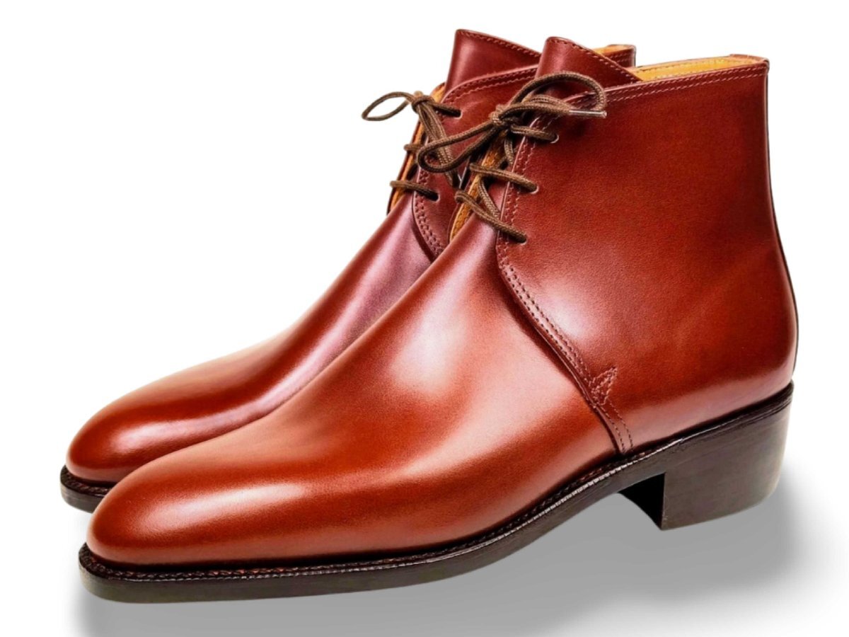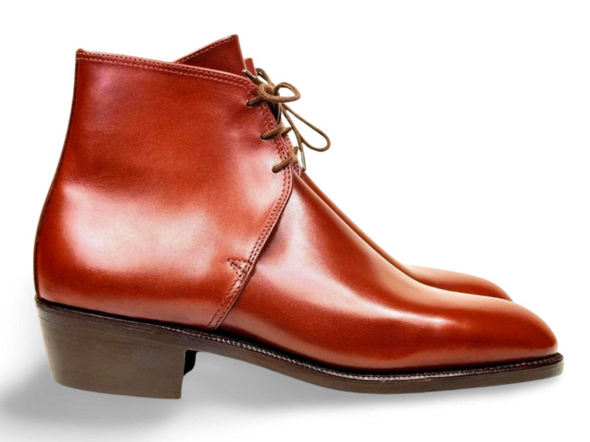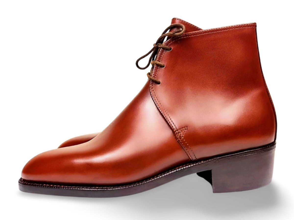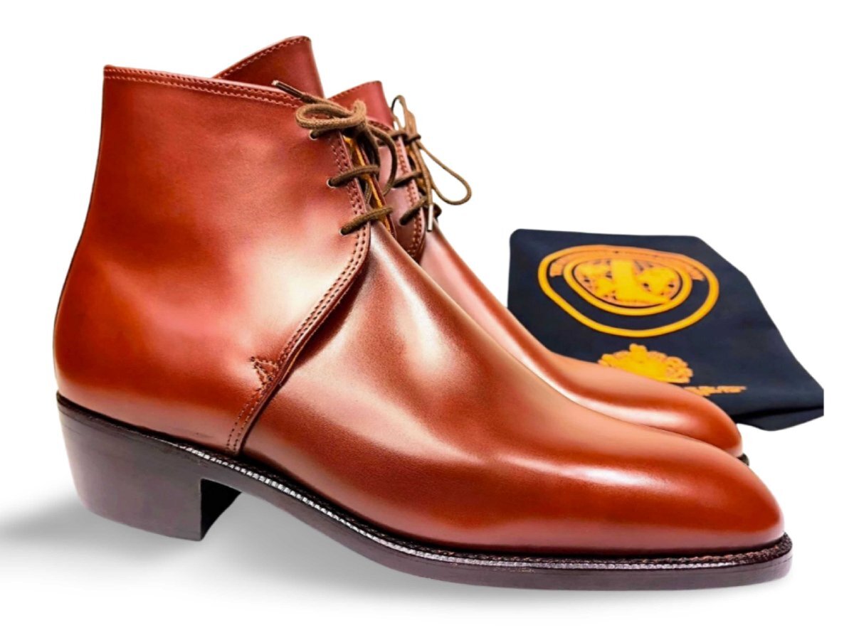 テーパードヒールは、通常のジョージブーツよりヒールが高く、ウェルトからヒールのトップリフトまで斜めに真っ直ぐ細くテーパードしており、美しいシルエットがその魅力です。