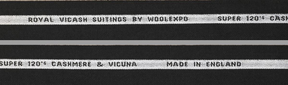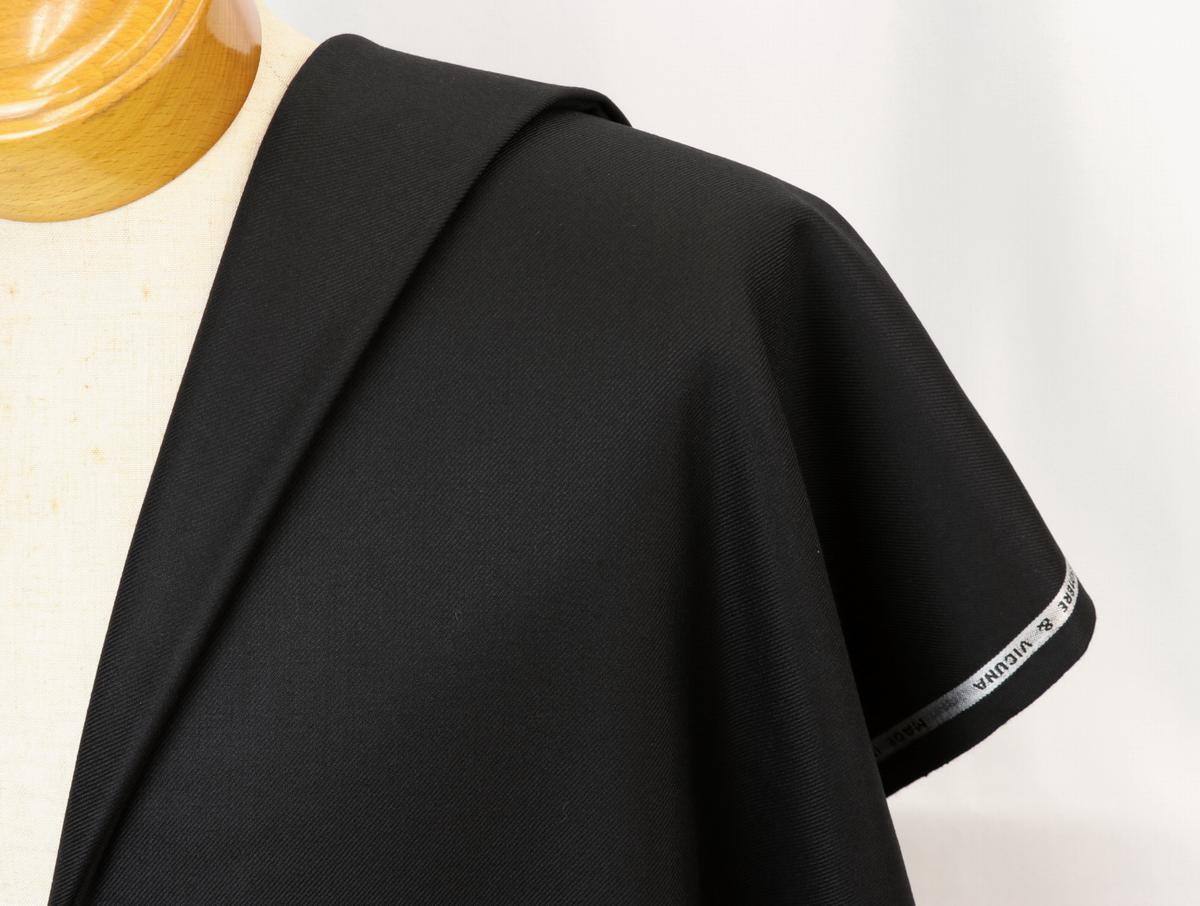 ■ウールエキスポ社最高峰「ロイヤル・ヴィキャシュ」黒無地綾織り・s120カシミア・ヴィキューナ・長さ3.2m