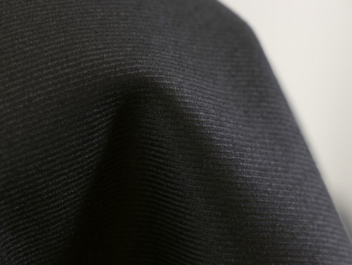 黒無地なのですがよく分かる綾織りになっています。 礼服用にも可能ですが礼服より普通のオシャレスーツに向きます。