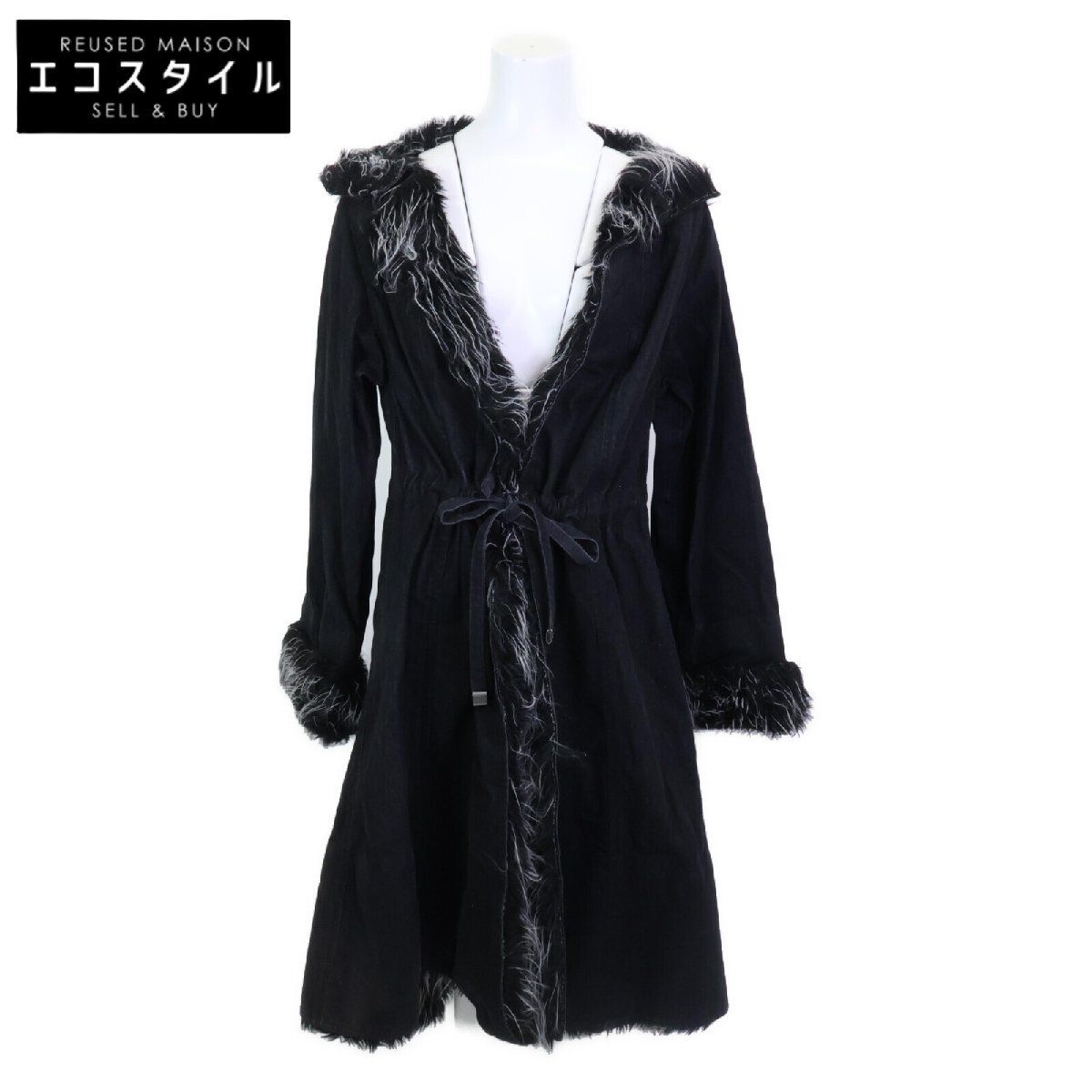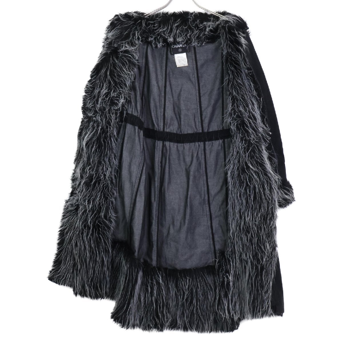 国内正規/ CHANEL シャネル 02A P20193 ファー デニム コート 36 ブラック レディース