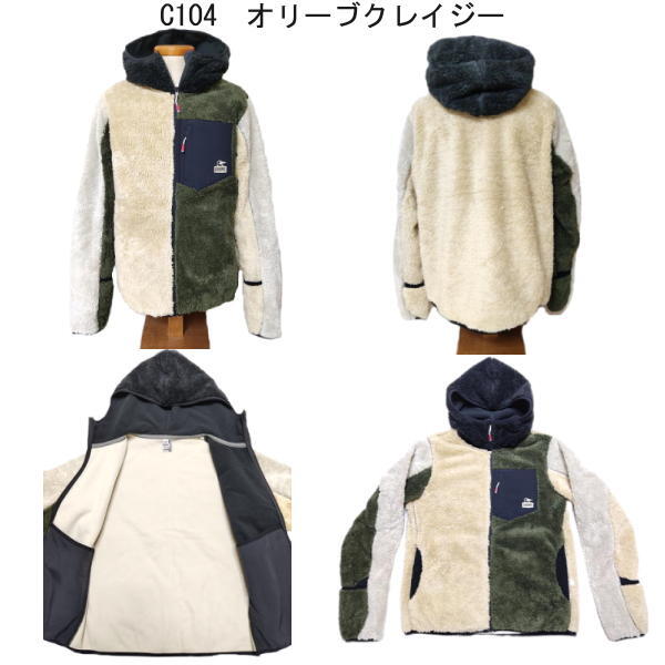 ゆったりとしたシルエットで、インナーにスウェットやニットなど肉厚なアイテムも着用可能。ボリュームのあるフードで肌触りが良く、首回りから頭まであたたかく包み込み、袖丈はあえて長く設け、袖口をひっくり返すとミトン(手袋)になるあそびゴコロのある仕様に。指先まであたかかく、冬のお出かけやキャンプでも活躍するひと品。 フロントポケットは生地を切り替え、ワンポイントで施したブービーフェイスロゴ刺しゅうがアクセント。
