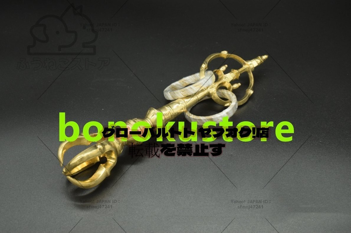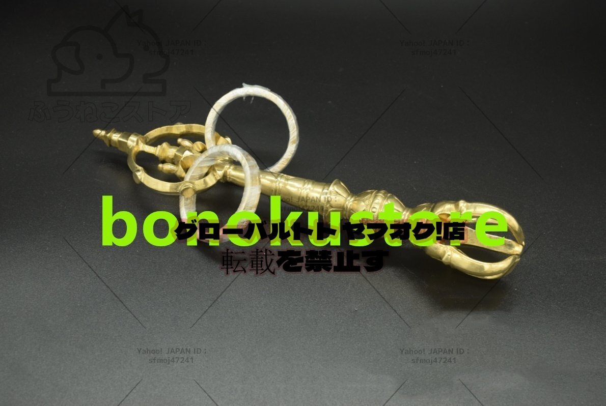 「密教法具 寺院用仏具」五鈷杵錫杖 真鍮製磨き仕上げ 長さ 28cm