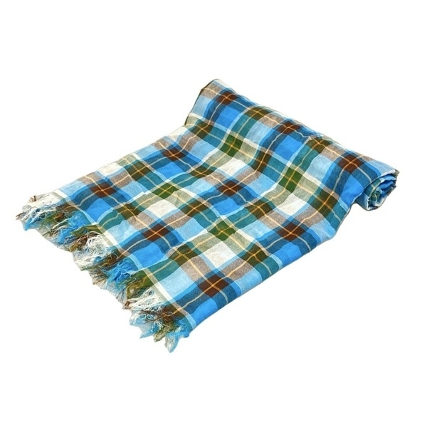 コムデギャルソンオム COMMEdesGARCONS HOMME ストール(ショール) HM-K401 - コットン ライトブルー×白×マルチ チェック柄 マフラー