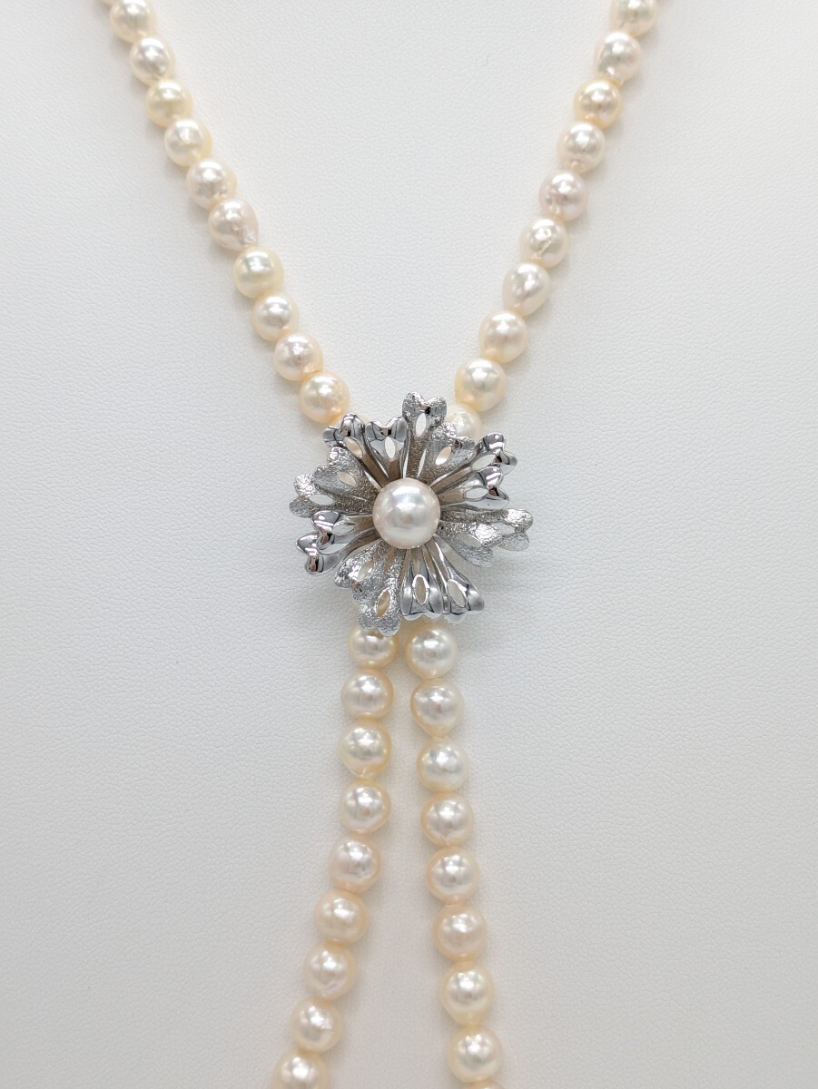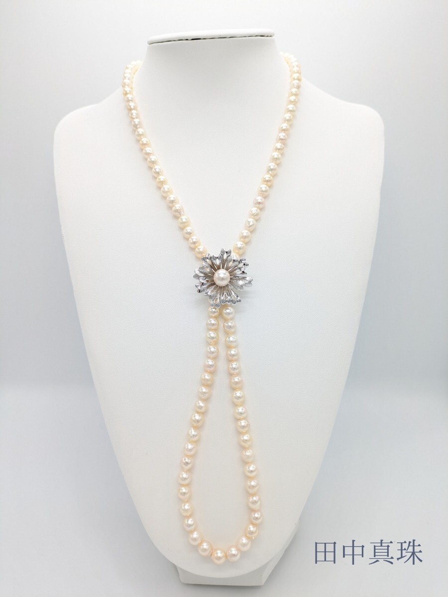 あこや本真珠を使ったパールロングネックレスになります。ネックレスクリップがセットになっておりお好みの長さで楽しんでいただけます。勿論画像9の様にシンプルなロングネックレスとしてもお使いいただけます。お祝いの席やパーティー、普段遣いにもおすすめです。シンプルなパールネックレスを既にお持ちの方におすすめのお品物です。