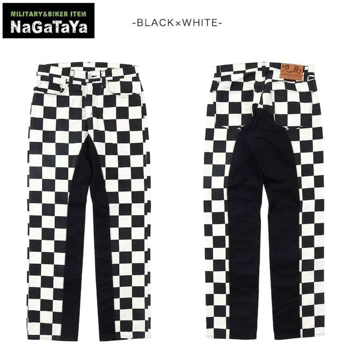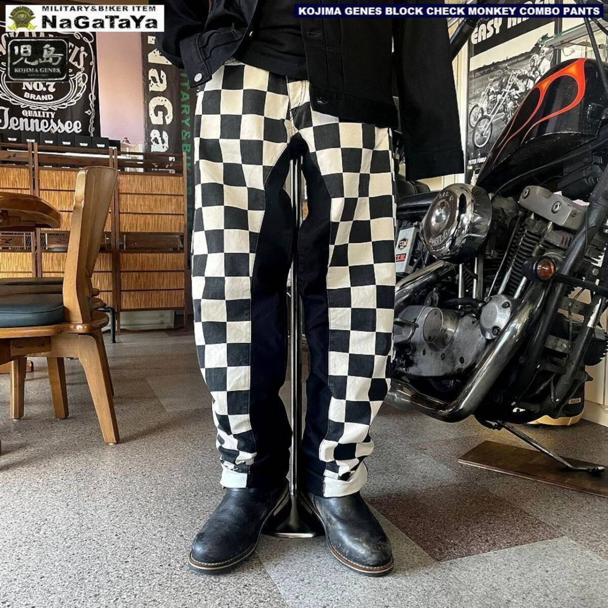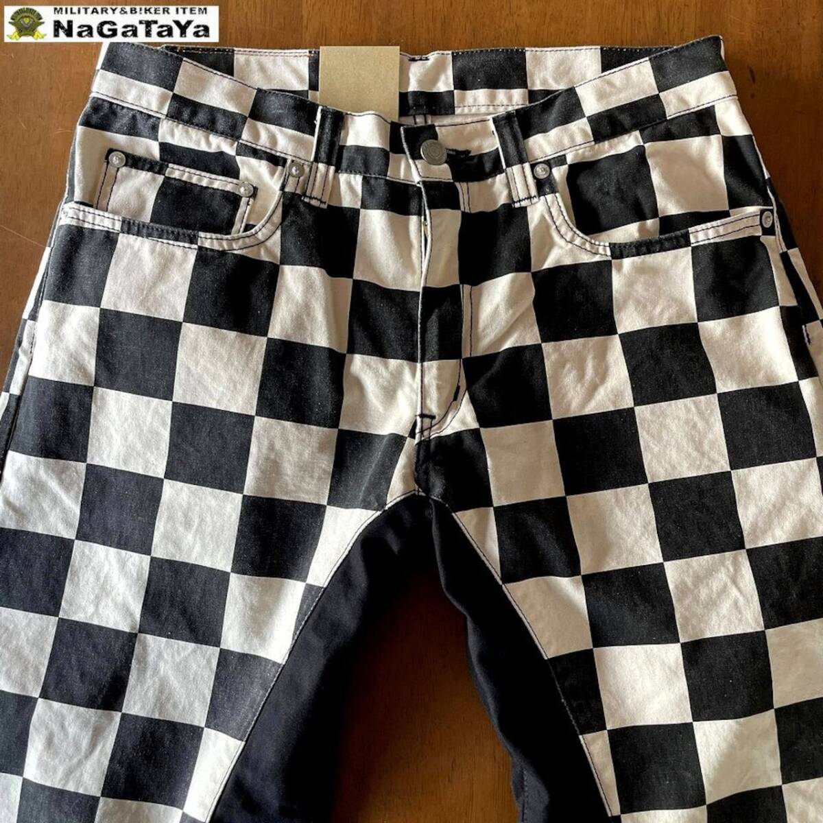 ブラック×ホワイト柄のブロックチェック生地仕様の、目立つ事マチガイなしのモーターサイクル系パンツです!!