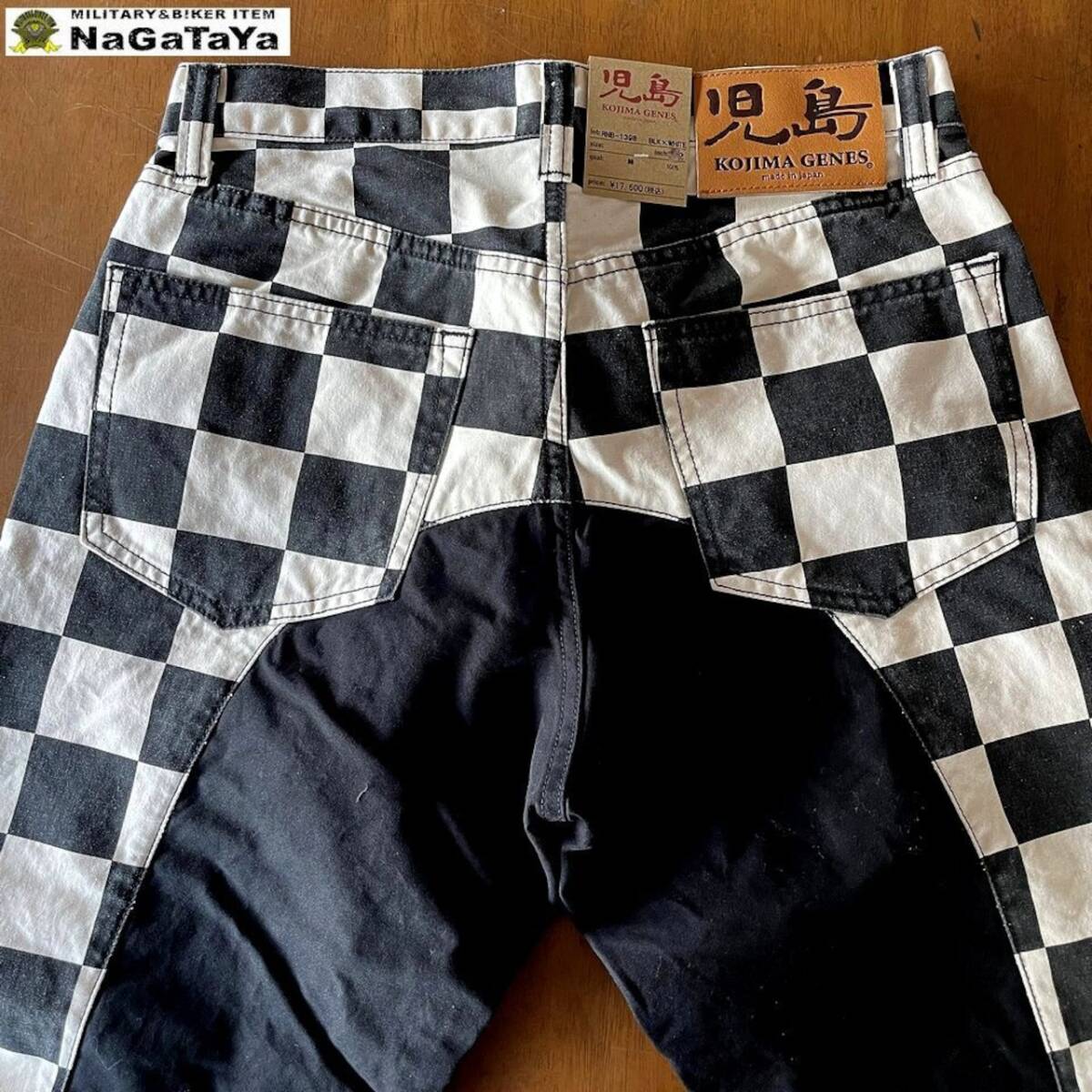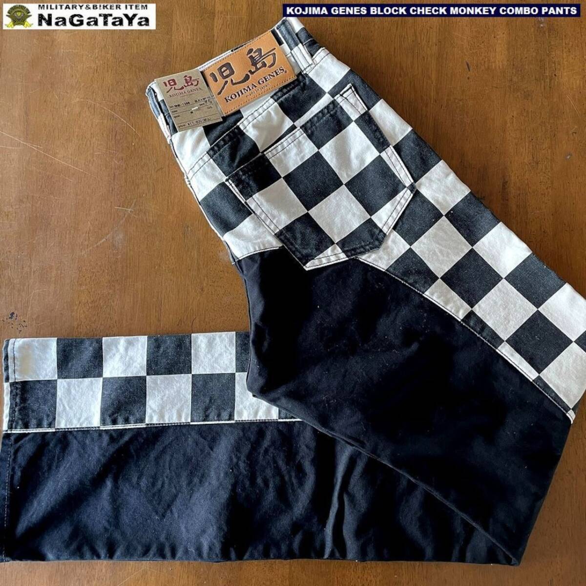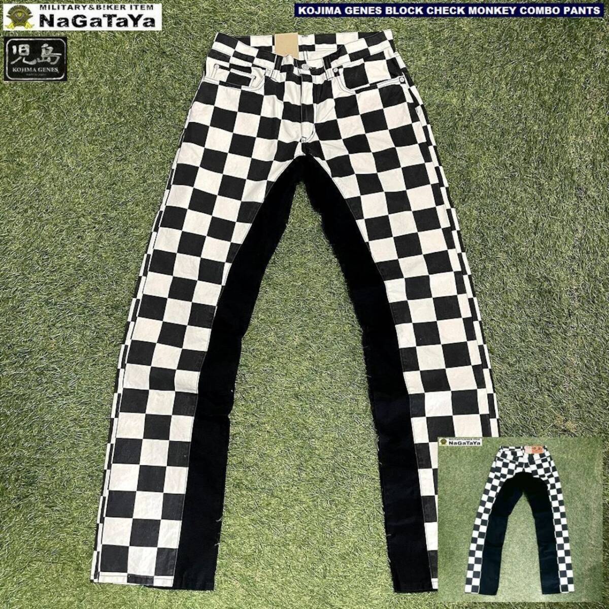 児島ジーンズ KOJIMA GENES ブロックチェック 5ポケット モンキーコンボパンツ 黒×白 36インチ W-92cm rnb1398 MADE IN JAPAN