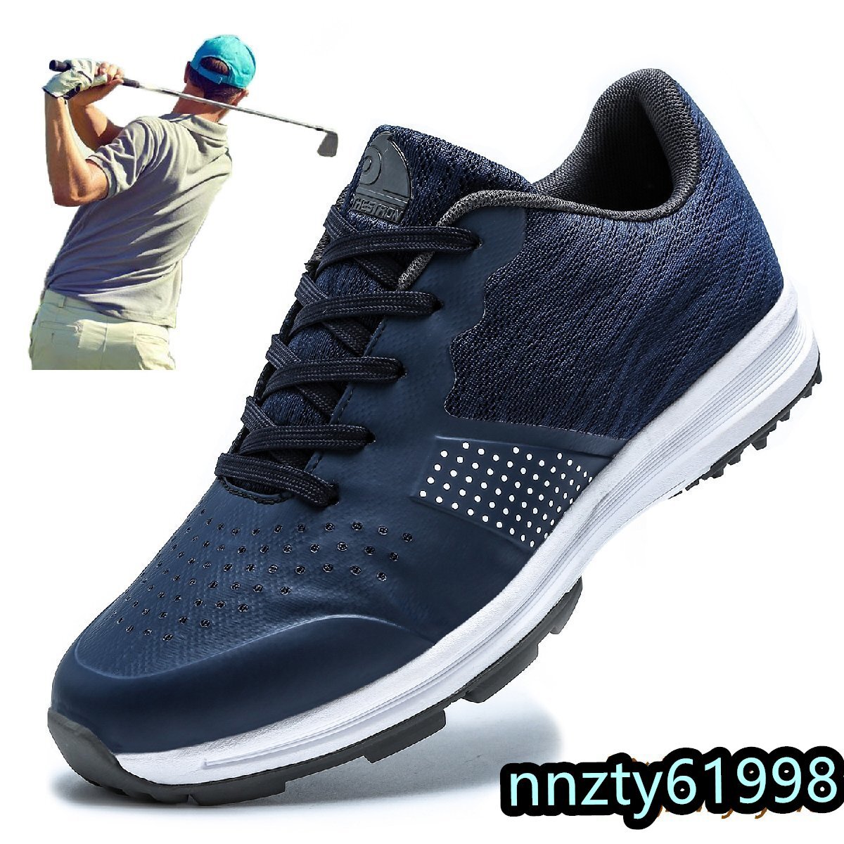 新品 ゴルフシューズ スポーツシューズアウトドア運動靴ウォーキング 軽量フィット感幅広い 防水防滑耐磨弾力性ネイビー27.5cmサイズ選択可